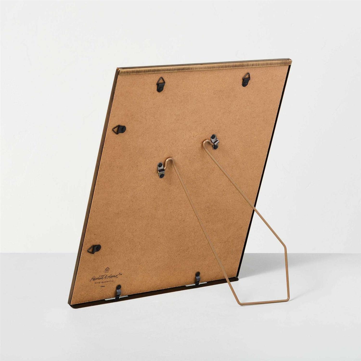 Put your memorable moments on display using this Metal Photo Frame from Hearth & Hand with Magnolia. Designed with a gold-tone metal frame in a brass finish, this photo frame features a sour cream interior that helps the photos pop up for an eye-catching look. Perfect enough to display on a tabletop or hang on the wall with the multiple display options, this gold-tone photo frame can be used anywhere around your home. Celebrate the everyday with Hearth & Hand — created exclusively for Target in collaboration with Magnolia, a home and lifestyle brand by Chip & Joanna Gaines. Built upon our shared commitment to giving back to our communities, these pieces reveal the beauty of everyday moments shared with family and friends.