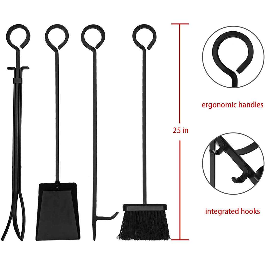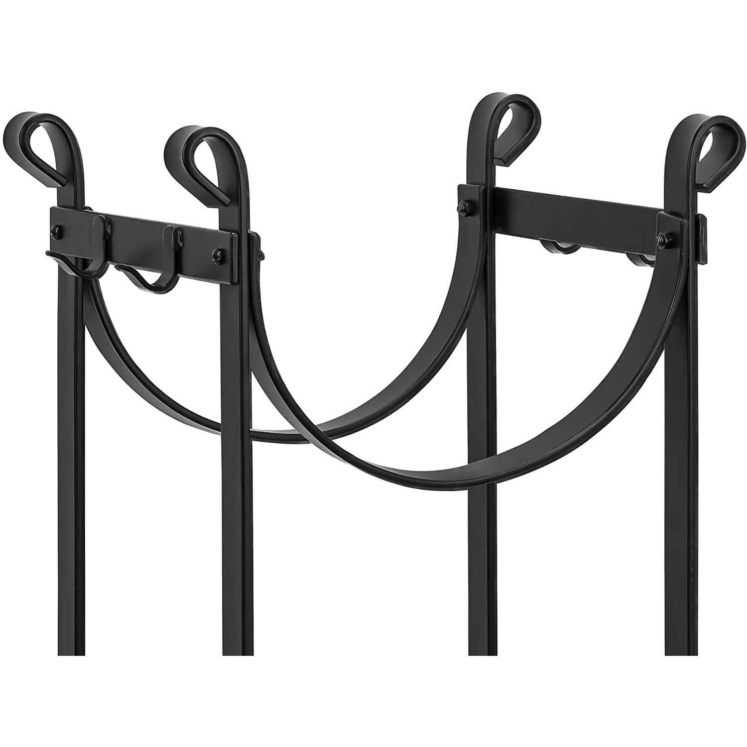 30.7in Tall Fireplace Log Rack with 4 Tools Indoor Outdoor Firewood Holders Lumber Storage Stacking Black Wrought Iron Logs Bin Holder for Fireplace Tool; Amagabeli Fireplace Wood Rack with Tool Sets Dimensions of fireplace tools set with log holder: 30.7inx14.1inx11.5in Firewood log rack decorate your indoor fireplace and outdoor fire pit. Made from durable wroght iron with black powder-coated finish Stylish & Functional: The fireplace wood rack with 4 tools holders can be well stocked with firewood and logs, hooks for all fireplace tools, poker, shovel, broom, tongs or fireplace bellows, and a steel shelf below the wood rack for fire starters, books, magazines, newspaper. Save your space: Only one product that fireplace rack with 4 tools to resolve all of your daily use. But this fireplace log rack with tool set dont occupy your home space.