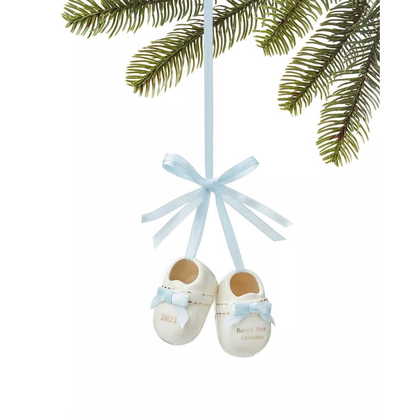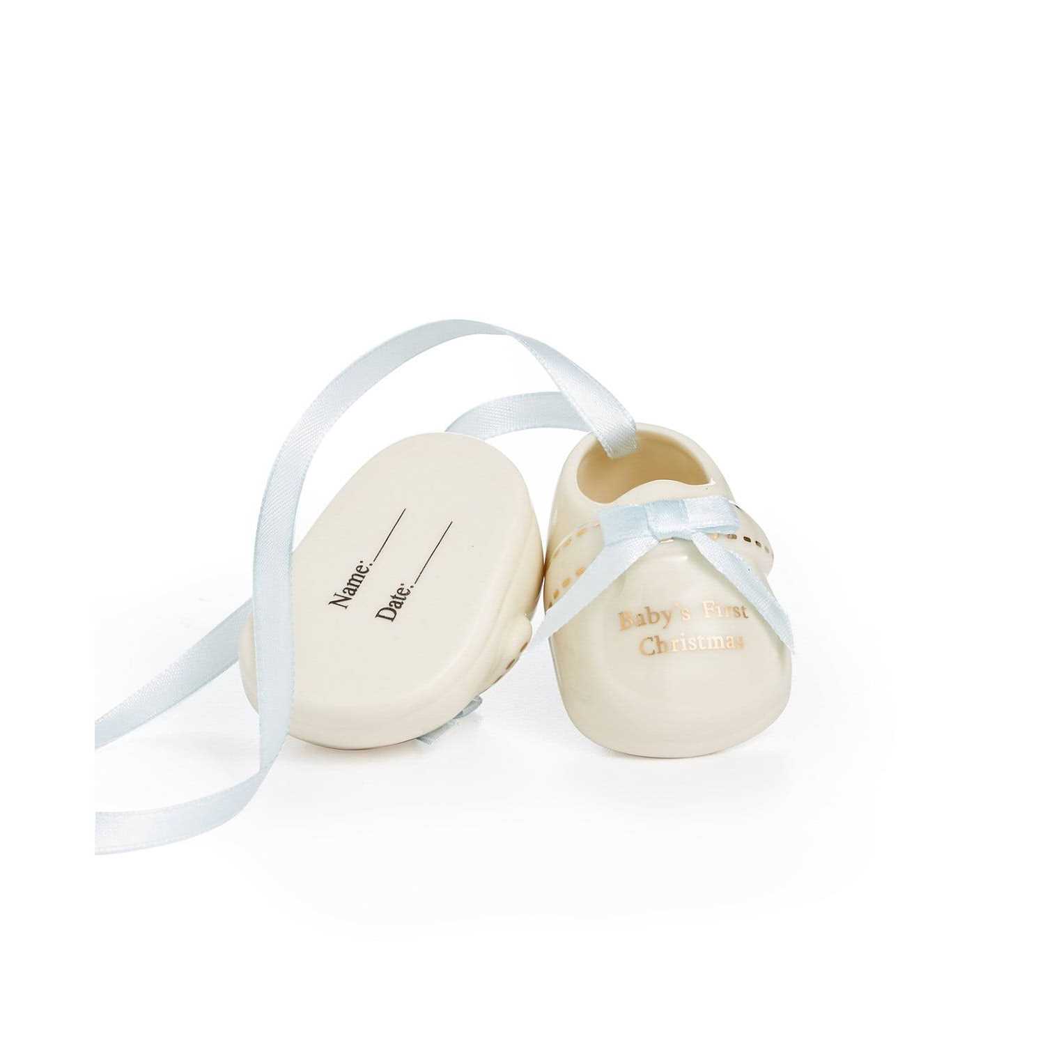 Holiday Lane Babys First Porcelain Blue Baby Shoes Ornament Approx. dimensions: 2.5H 95% PORCELAIN, 5% POLYESTER Spot Clean only