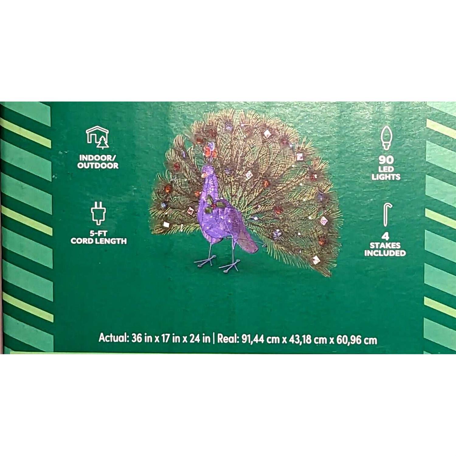 Let this 36-in wide lighted peacock dazzle your holiday decorating indoors or outdoors with its colors and twinkle light tail.