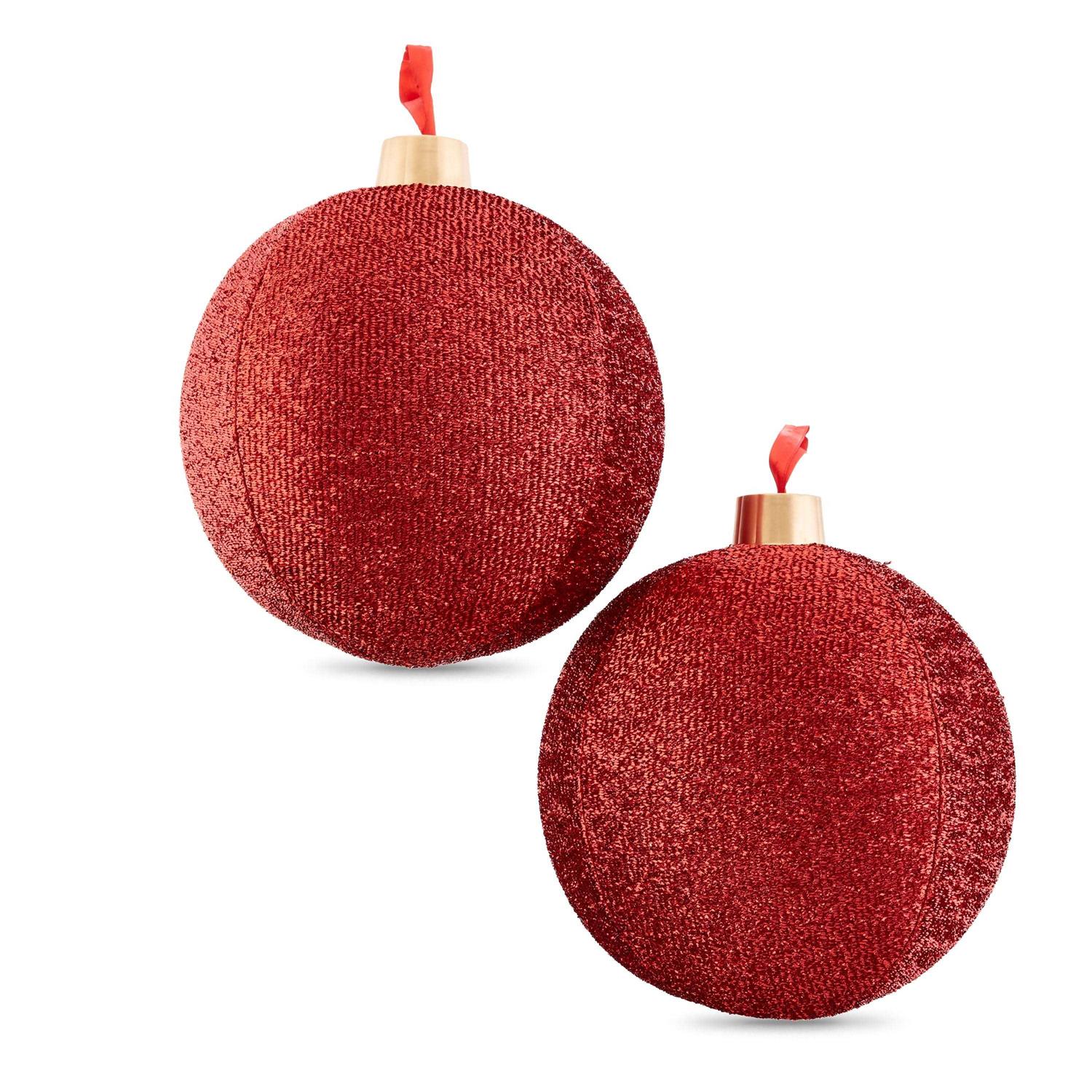 Two huge tinsel ornaments that can be displayed indoor or outdoor this Christmas season. Inflates quickly to 12 inches in diameter, use a pump or inflate by mouth. With durable, weatherproof material, these will look great outside or inside your house.