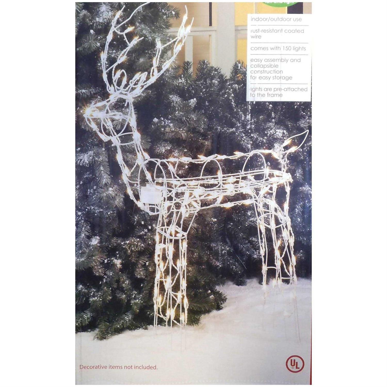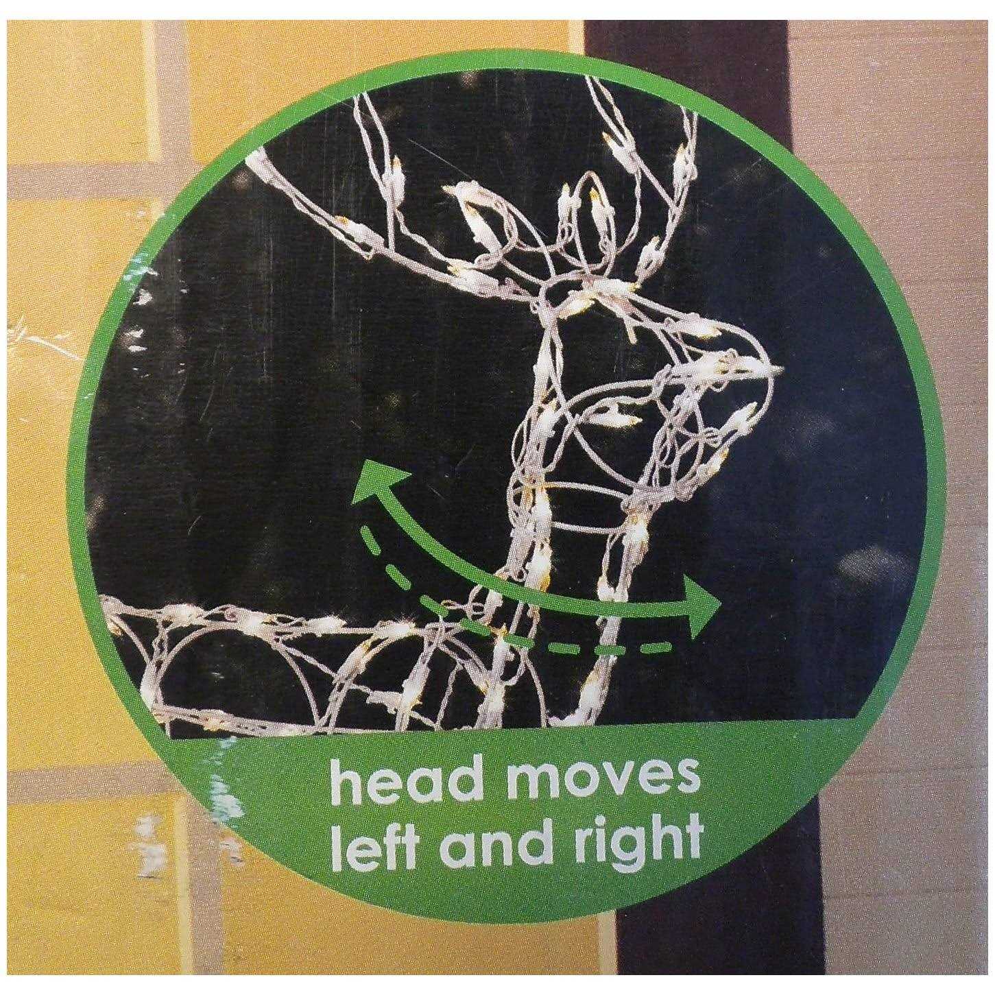 Lighted Holiday Displays by HOLIDAY TIME. Details:Light up your yard in style with this 3D Animated Standing Buck. It is 48 inches tall with 150 clear incandescent lights on a white wire frame. This animated buck moves its head from side to side. It is designed for indoor or outdoor use. Show off your home or yard to your friends and neighbors with this gorgeous standing buck!
