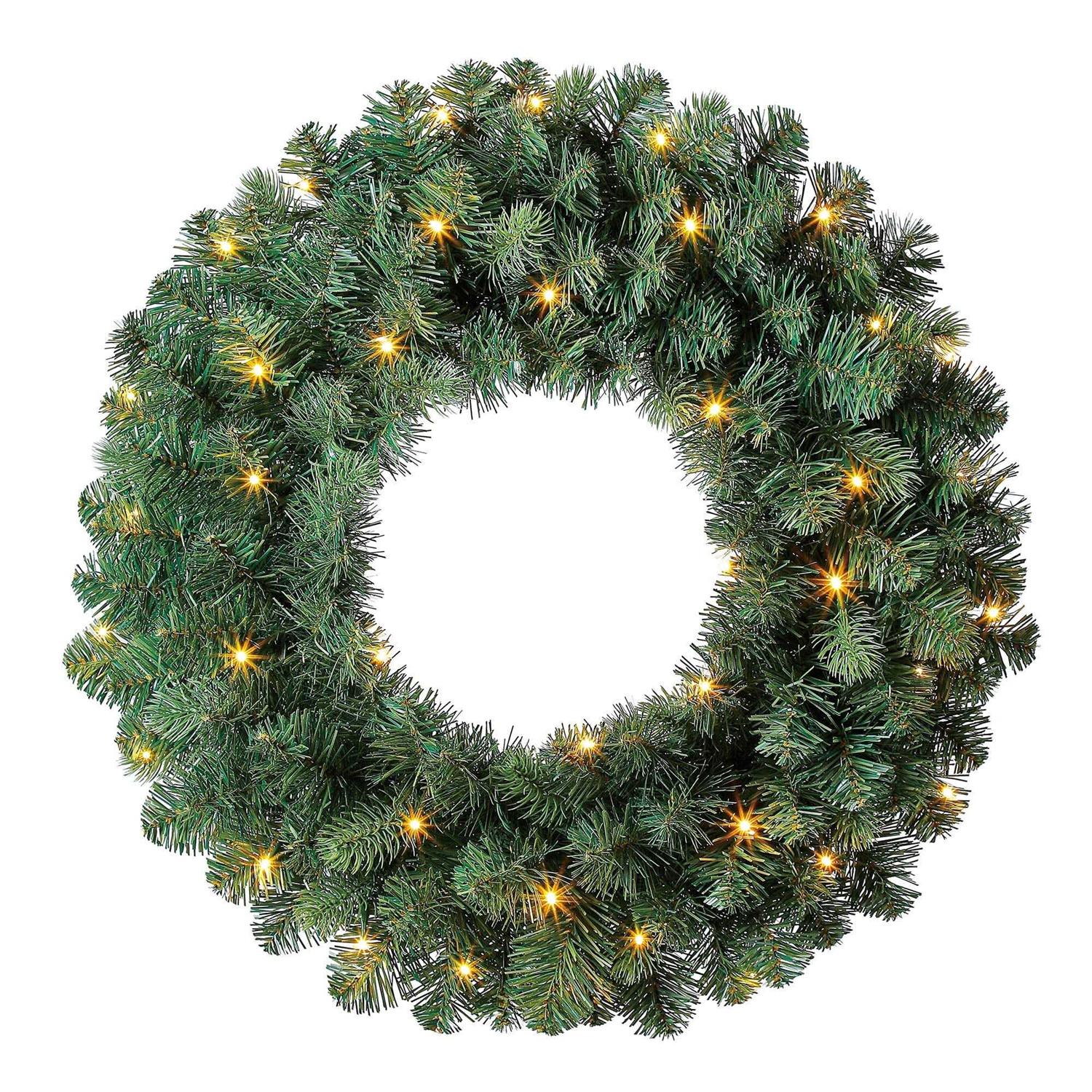 Holiday Time Clear Micro-Dot LED Lights Pre-Lit Norway Artificial Christmas Wreath – 24 in