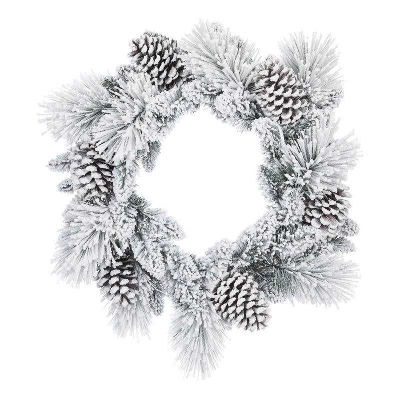 Ho, ho, ho! Use this gorgeous wreath to mark your home as a festive space where the good times roll. Simply hang the wreath on your front or side door to instantly create a friendlier, more welcoming vibe. Santa wont miss your house when he sees the wreath from his sleigh! The snow-kissed wreath contributes to a look that will be memorable and totally worthy of a special post. The 24-inch circular design mirrors the love you have for the special people in your lifeit has no beginning or end. Plus, the flocked wreath design will coordinate beautifully with the rest of your festive holiday dcor, transforming your living space into an enchanting winter wonderland that will delight your children and any special holiday guests.