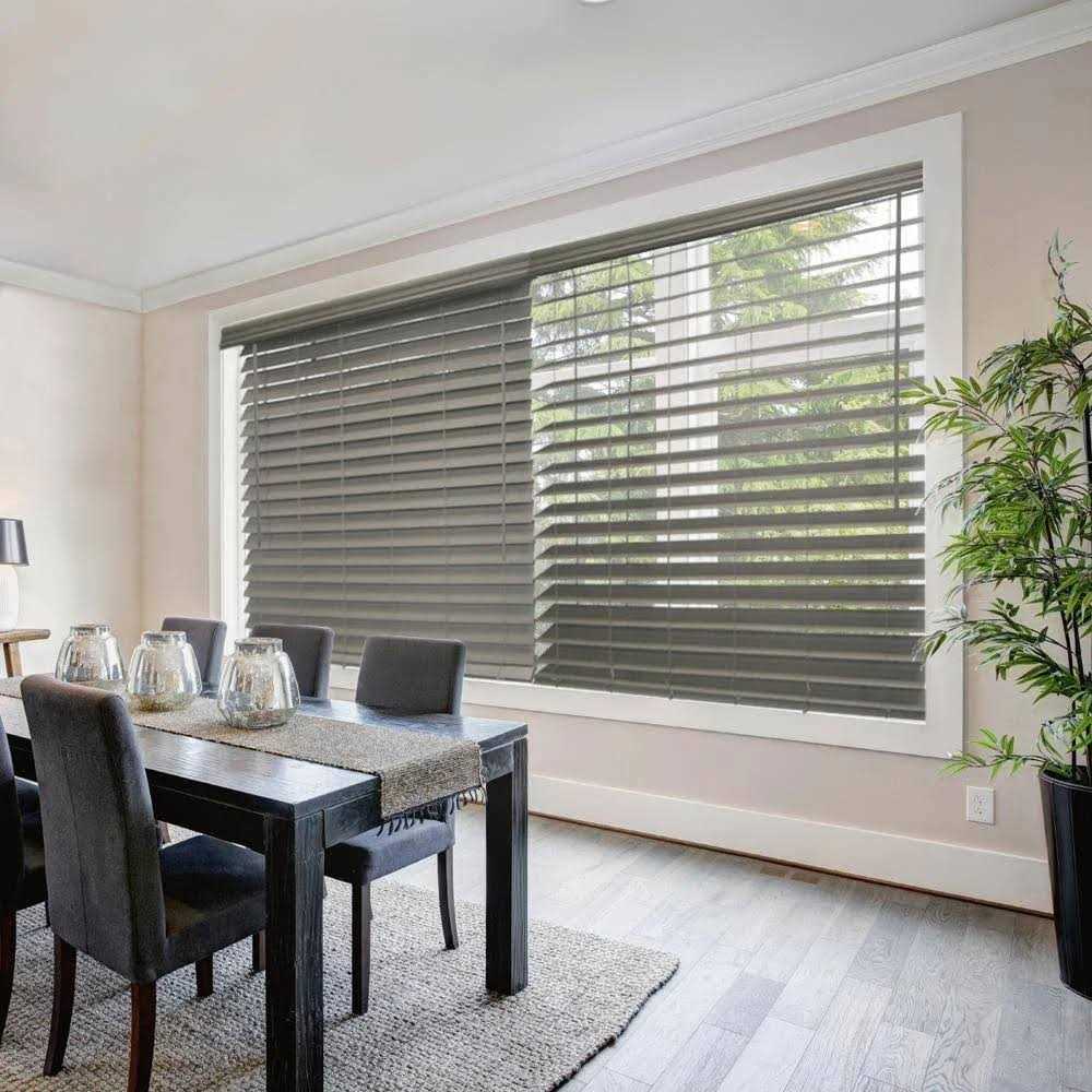 The 2-1/2 in. Cordless blinds add a cleaner look and are safer for children and pets. These blinds are designed with 25% larger slats for a greater outside view. Specially designed no-hole slats offer total light and privacy control. Slats are made from heat and moisture resistant material that is energy efficient and will not warp or crack. These blinds are ideally used for bathrooms, kitchens and garages. For maximum light and privacy control, rotate the slats downward to ensure proper closure. Color: Gray.