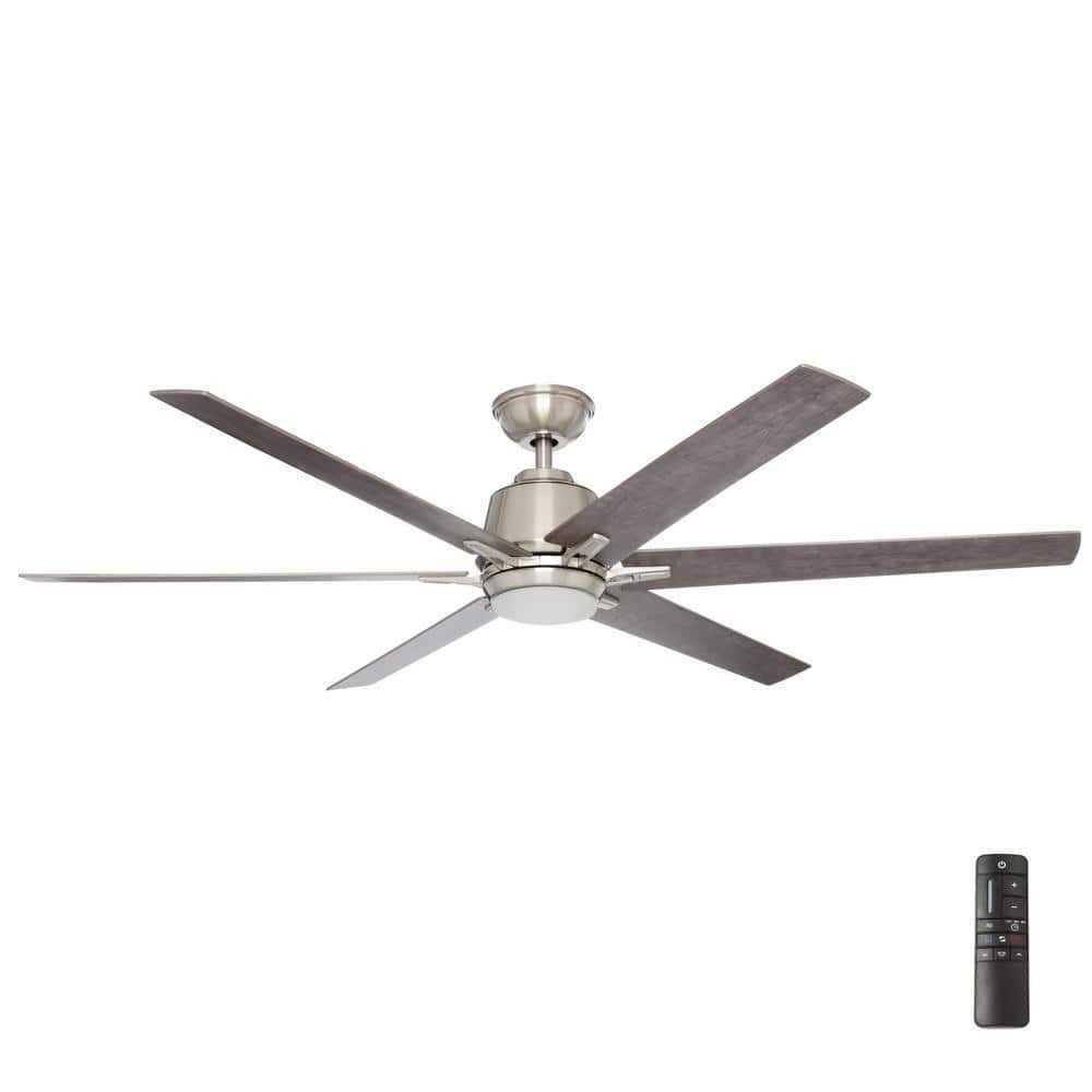 Home Decorators Collection YG493D-BN Kensgrove 64 in. Integrated LED Brushed Nickel Ceiling Fan with Light and Remote Control