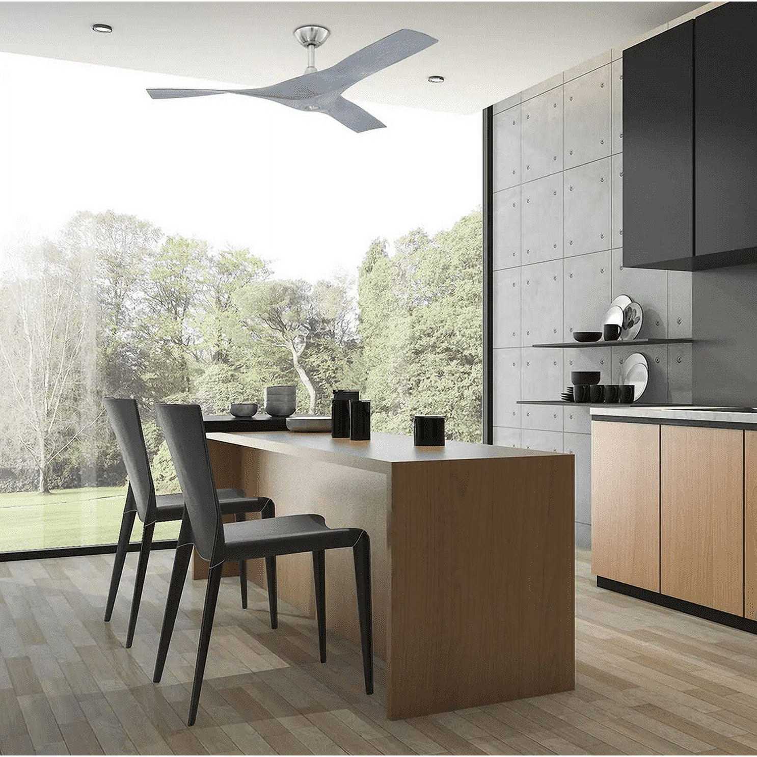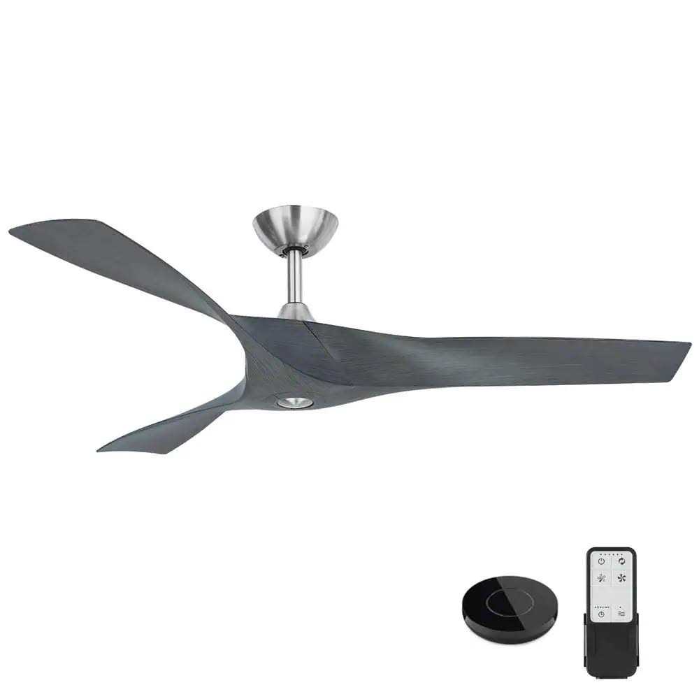 Indoor/outdoor ceiling fan that can be installed in wet locations Features a 6 speed energy efficient DC motor with remote Blends rustic and industrial styling for a distinctive appearance Ultra sleek and modern the three blades showcase a minimalistic look. A single twist design per blade provides a seamless-like aerodynamic style. Far from your grandmother ? s traditional fan elevate your d cor with this modern-day fixture.
