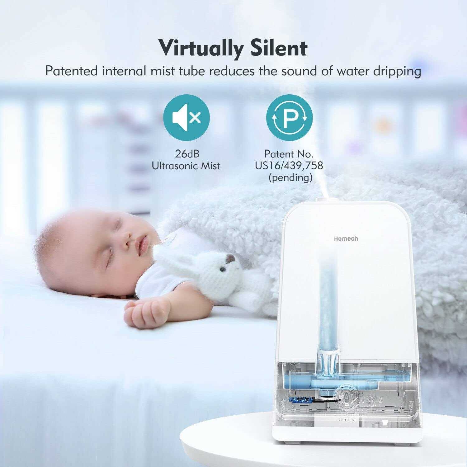 - Perfect for Your Bedroom ━ Homech’s patent-pending water dripping reduction system keeps the sound level to under 27dB for a sound sleep