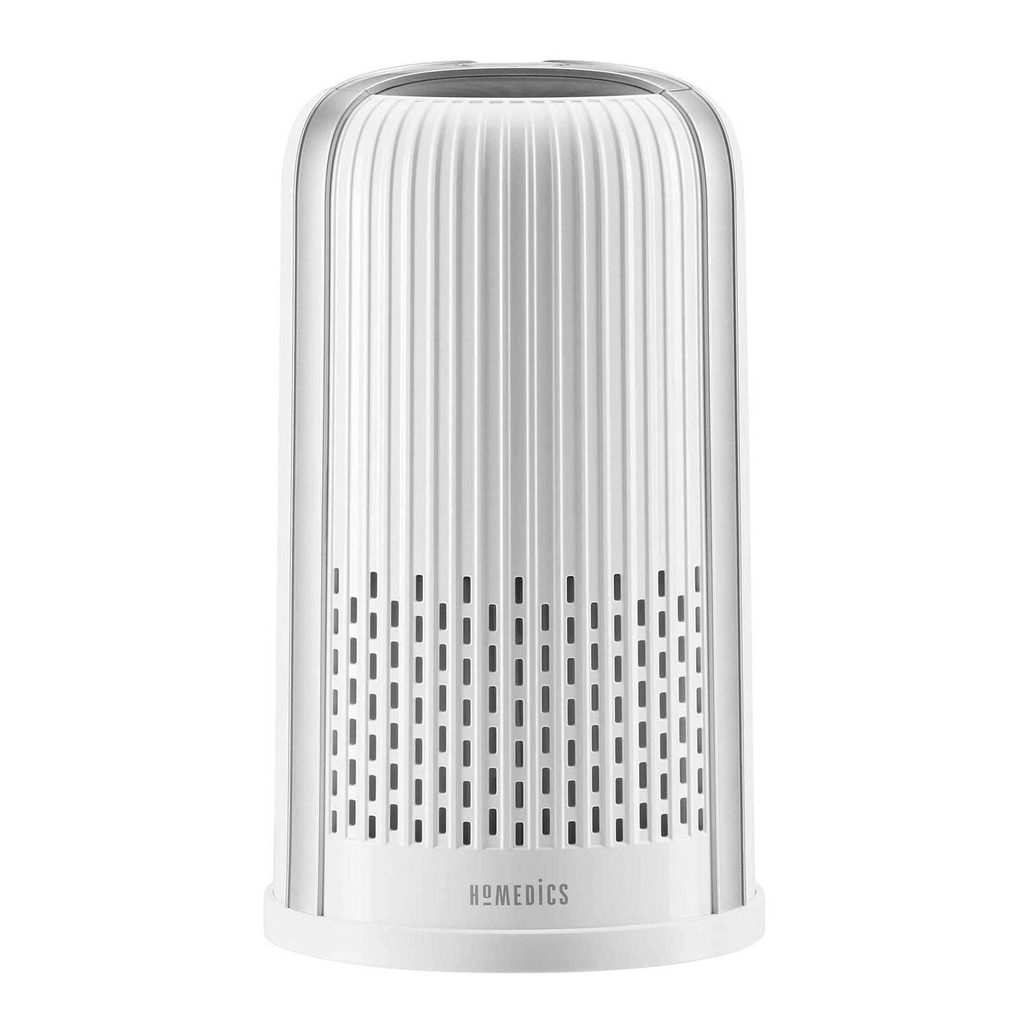 The HoMedics TotalClean 4-in-1 Tower Air Purifier is perfect for small, personal spaces such as bedrooms, nurseries, offices, basements, dorms, and more. Circulate clean, fresh air every hour in rooms up to 291 sq. ft. with 2 speed options and optional ionizer. The prefilter captures large particles while the carbon odor filter reduces odors and VOCs. Keep the air in your home cleaner with any one of HoMedics Air Purifiers. Dont just sanitize your hands and your home, sanitize your air! Take your health and cleanliness to the next level by ensuring the air youre breathing is the cleanest possible. Social distance yourself from viruses, germs and bacteria by using any one of our HoMedics TotalClean Air Purifiers today.
