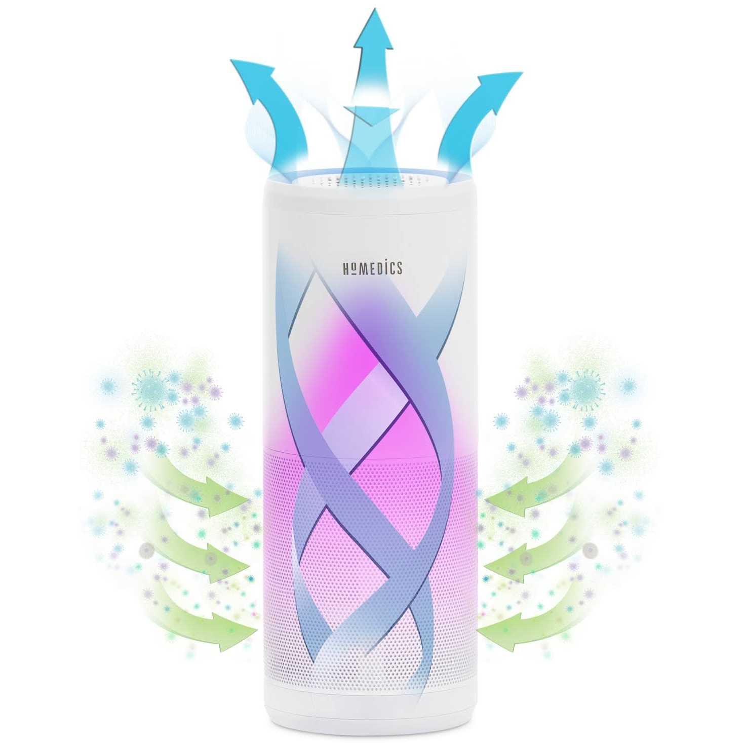 Clear the air. This 4-in-1 portable air purifier goes where you go inside your home — removing dust particles, reducing household odors, and providing whisper-quiet operation. From HoMedics.