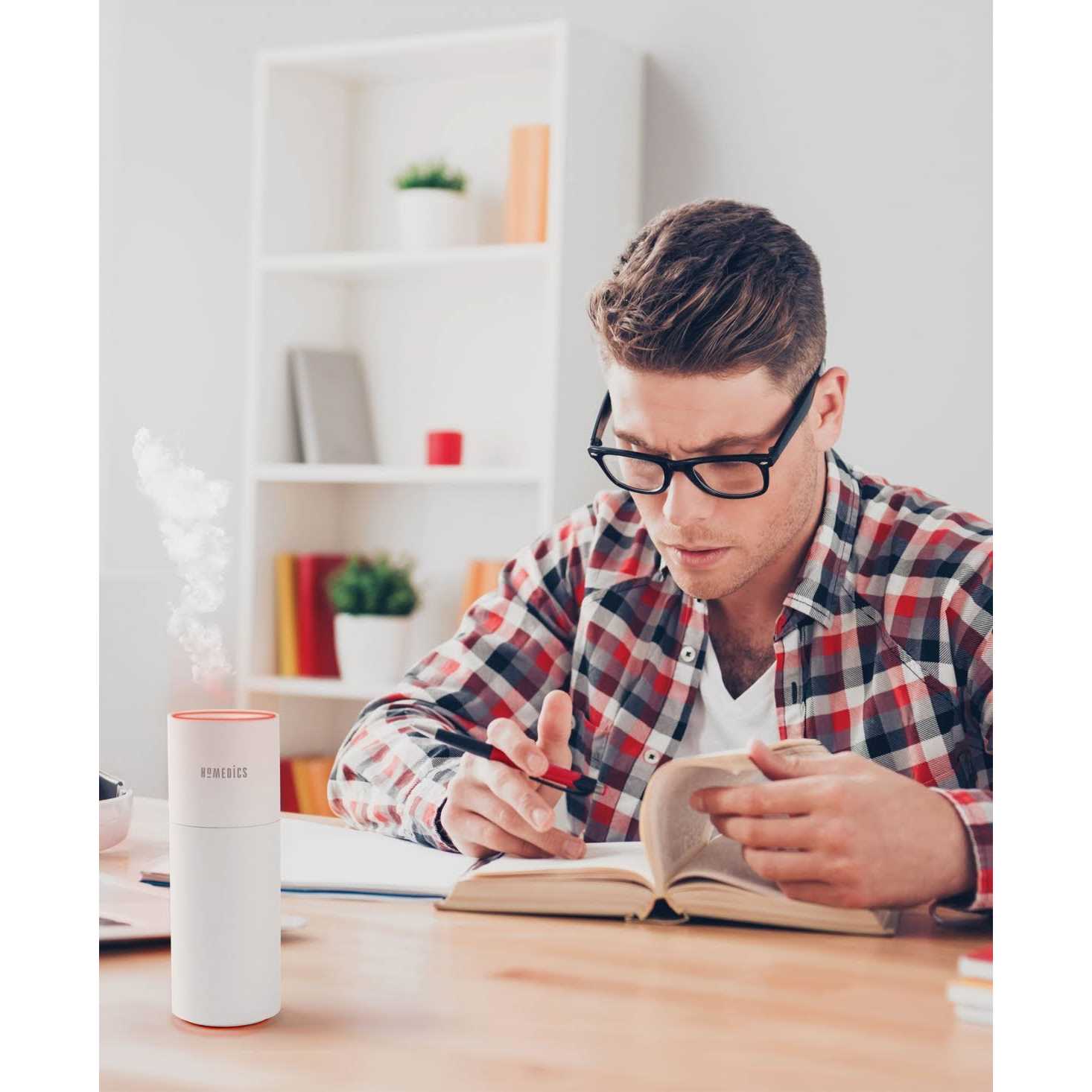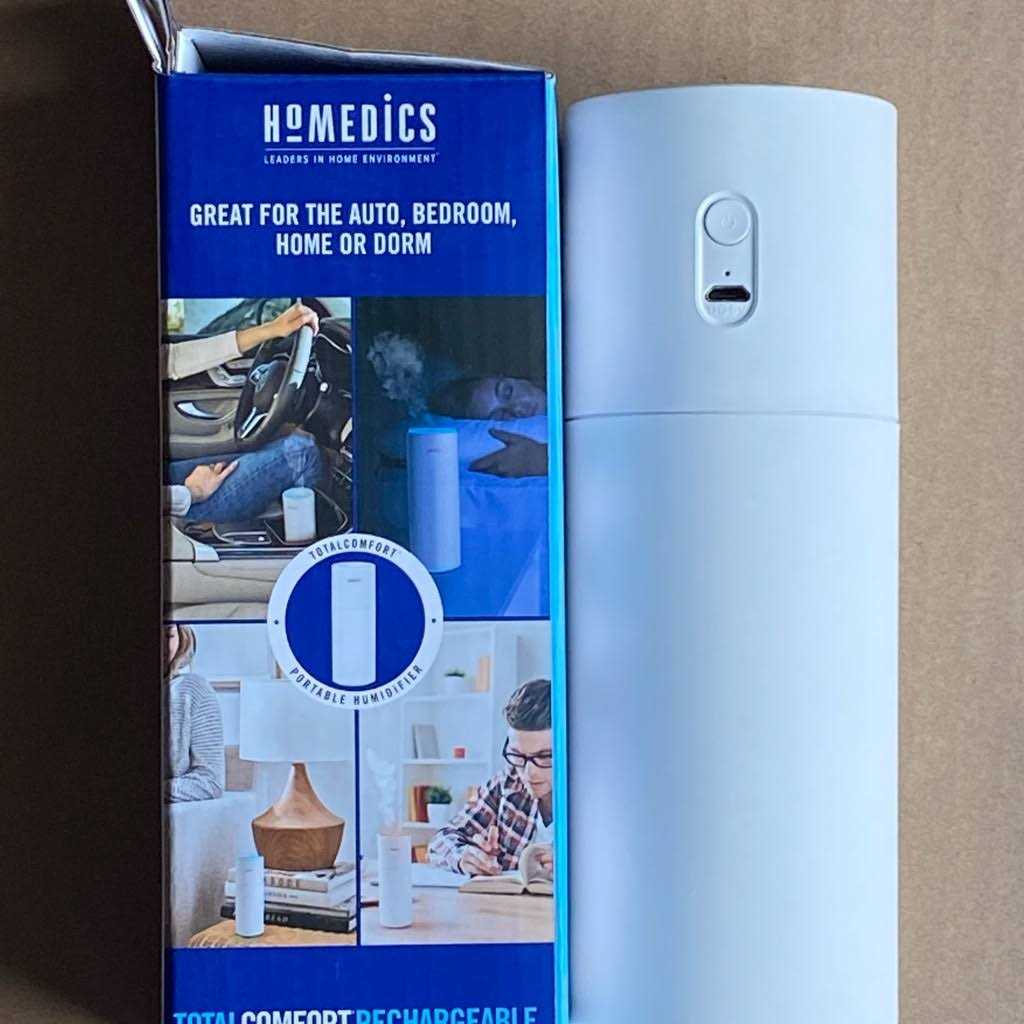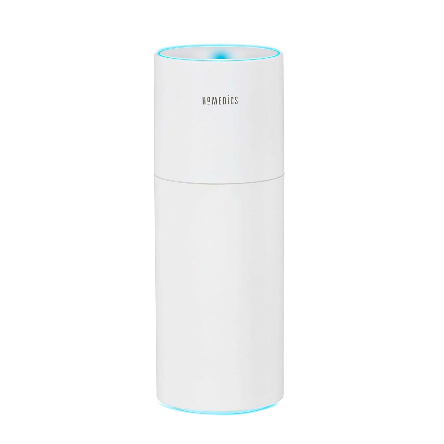 Breathe in total comfort on the go. The HoMedics TotalComfort Portable Ultrasonic Humidifier disperses visible cool mist with 2 adjustable mist settings. Small enough to fit in your car cup holder, it’s perfect for personal space. The easy-to-fill 8.5-oz. tank features up to 10 hours of runtime when plugged in and up to 2.5 hours when using the rechargeable battery with auto-shutoff protection after 12 hours. Clean Tank Technology helps protect the tank from mold and mildew. Plus, a built-in color-changing accent light with on/off allows you to customize your ambience.