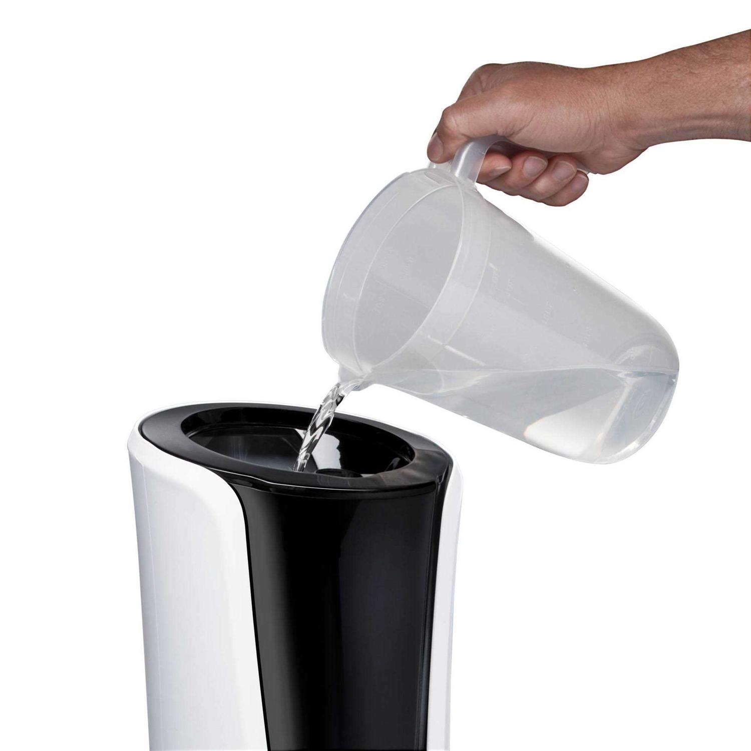 Choose between warm or cool micro-fine mist. The warm mist feature kills up to 99.99% of bacteria and whisper-quiet operation with the HoMedics TotalComfort deluxe ultrasonic humidifier. Clean Tank Technology helps protect the tank from mold and mildew. The top-fill 1.5-gallon water tank is easy to fill and clean, has a 65-hour continuous runtime and an 8-hour shut-off timer. The user-friendly LED digital display offers a programmable humidistat, night-light and 5 mist settings. Enhance your space further with the included Essential Oil Tray accompanied by 3 individual pads and demineralization cartridge. Great for large bedrooms and family rooms.