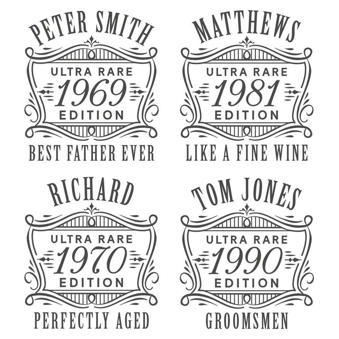 Any whiskey connoisseur needs the perfect gift set and this customized crystal decanter set fits perfectly! This set includes four glasses, a decanter, nine whiskey stones, a large gift box, tissue paper, and black raffia filling. The decanter is personalized with two lines of text and a year. The Truman glasses have a cool design reflecting the light and plenty of space for any ice or mixers you like in your drink! This crystal decanter set will make an incredible anniversary gift for your husband or as a promotion gift for your brother! The Truman glasses measure 3.5″ x 3.25″ and hold 11 ounces, and the Carson decanter measures 8.5″ x 3.5″ and holds 28 ounces. The large gift box measures 14″ x 11.75″ x 5.5″.