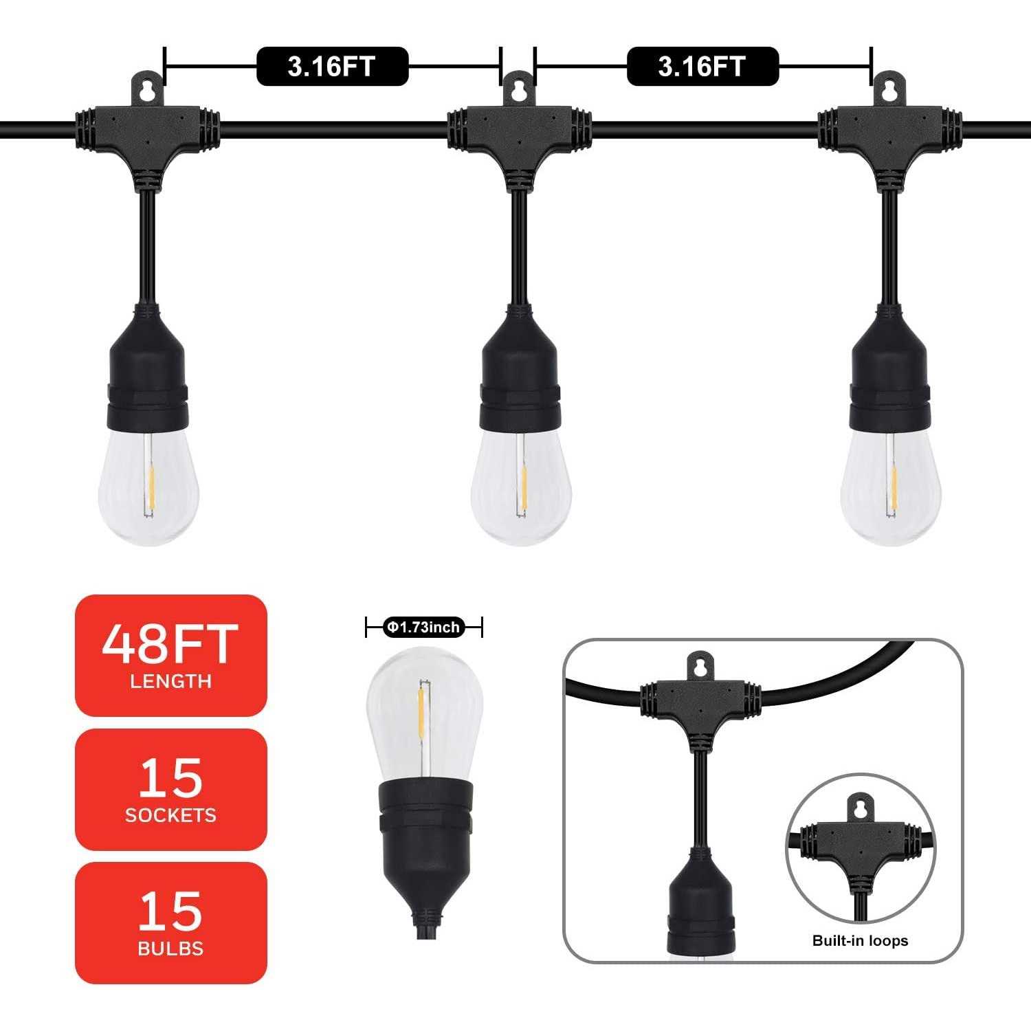 Honeywell 48 ft Outdoor String Lights, Commercial Grade Waterproof LED Patio 15