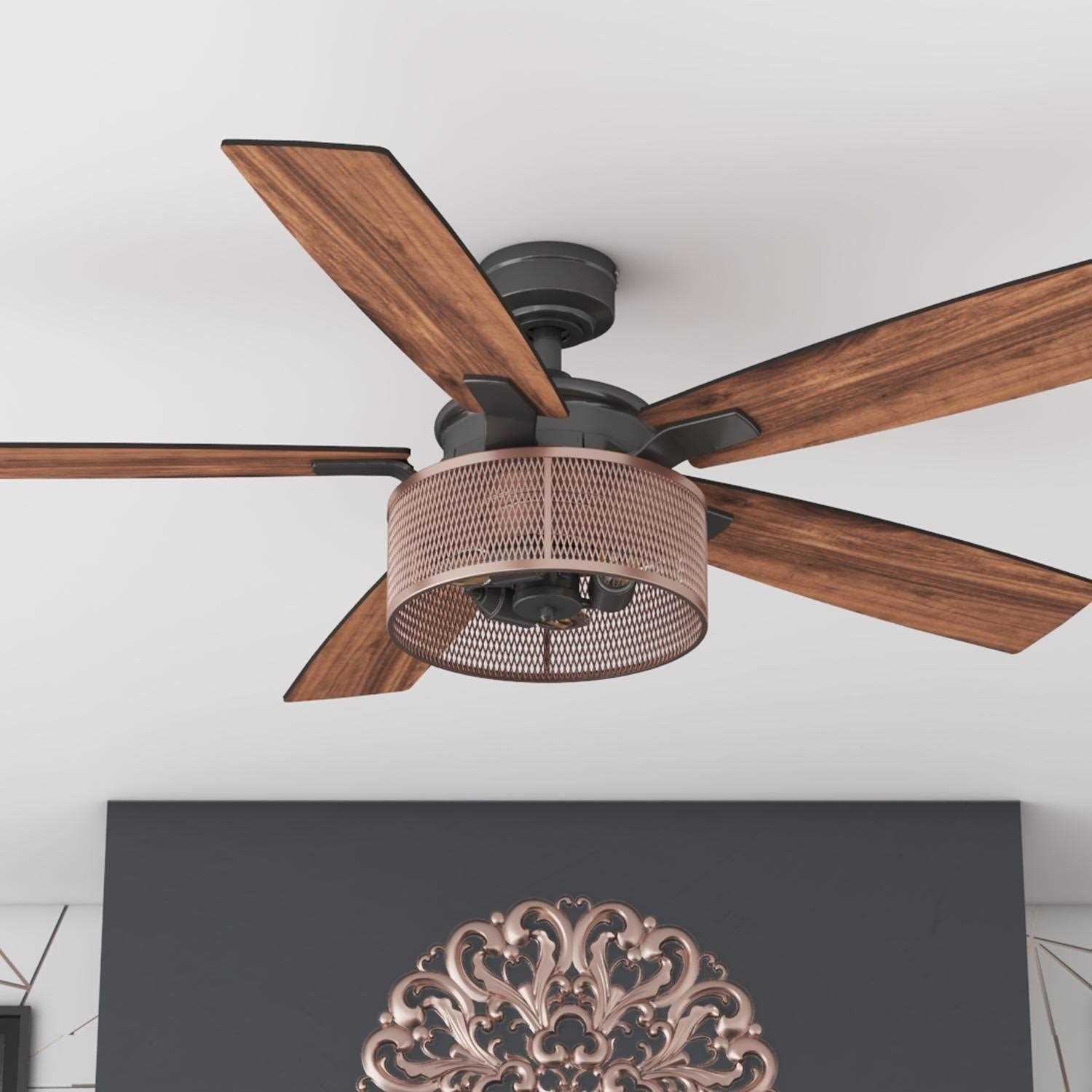 The Honeywell Carnegie is a captivating 52-inch ceiling fan that offers an industrial farmhouse appeal with a rugged, modern flair. This chic ceiling fan is uniquely crafted with a striking copper steel mesh drum and beautifully illuminated with three exposed vintage-style Edison LED dimmable light bulbs. From the shape of the blade iron flowing down to the shape and style of the fan blades, the Carnegie creates a very sleek, geometric appeal making it a subtle, yet eye-catching focal point. The Carnegie dual-finish matte black / copper body is perfectly accented by 5 reversible blades, easily adjustable and quick to change whenever you want to freshen up the existing look or just try something new! The Carnegie farmhouse ceiling fan comes expertly paired with a mopane finish on one side and a burnt oak finish on the reverse- the choice is yours! This fan is easy to install and comes with 2 different mounting options standard or angled. The down rod is 4 inches in length with an accompanying 54 leadwire should you wish to get a longer down rod. The reversible motor housing enables it to not only cool during the summer but help circulate warm air during the winter. For added ease and elevated luxury, the features and fan functions are adjustable by remote control. Offering a unique style, splendid air flow and superior quality, just like all else Honeywell, youll be able to rely on this fan for years to come.