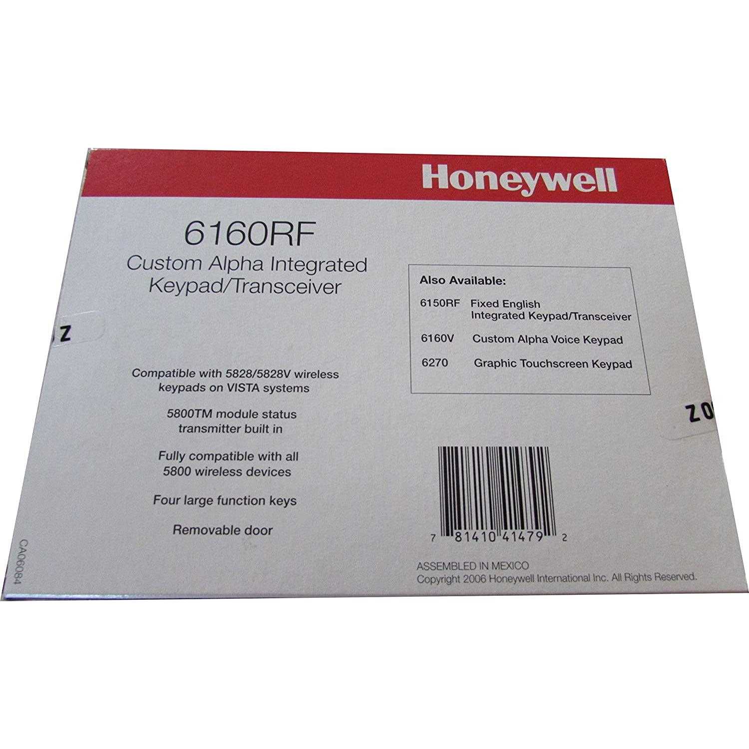 Honeywell 6160RF Custom Alpha Integrated Keypad/Transceiver Built-in Wireless Receiver. The 6160RF’s integrated keypad and receiver design helps reduce installation, material and inventory costs while increasing valuable add-on opportunities. It adds full wireless capability to any VISTA control without additional wiring or sacrificing zones.