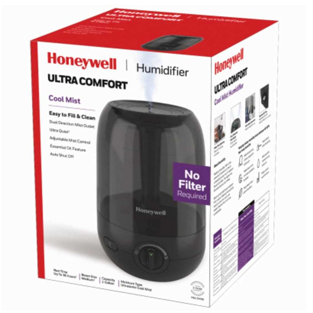Whether you want to improve breathing for better sleep, protect wood floors and furniture, or even help houseplants thrive, use the Honeywell Ultra Comfort Cool Mist Humidifier to experience the benefits of returning essential moisture to your air. This ultrasonic humidifier quietly produces a visible, cool mist that helps you feel more comfortable, temporarily relieving dry air discomforts such as nasal congestion and dry skin. There are no filters to replace, and the tank is designed for easy cleaning.
