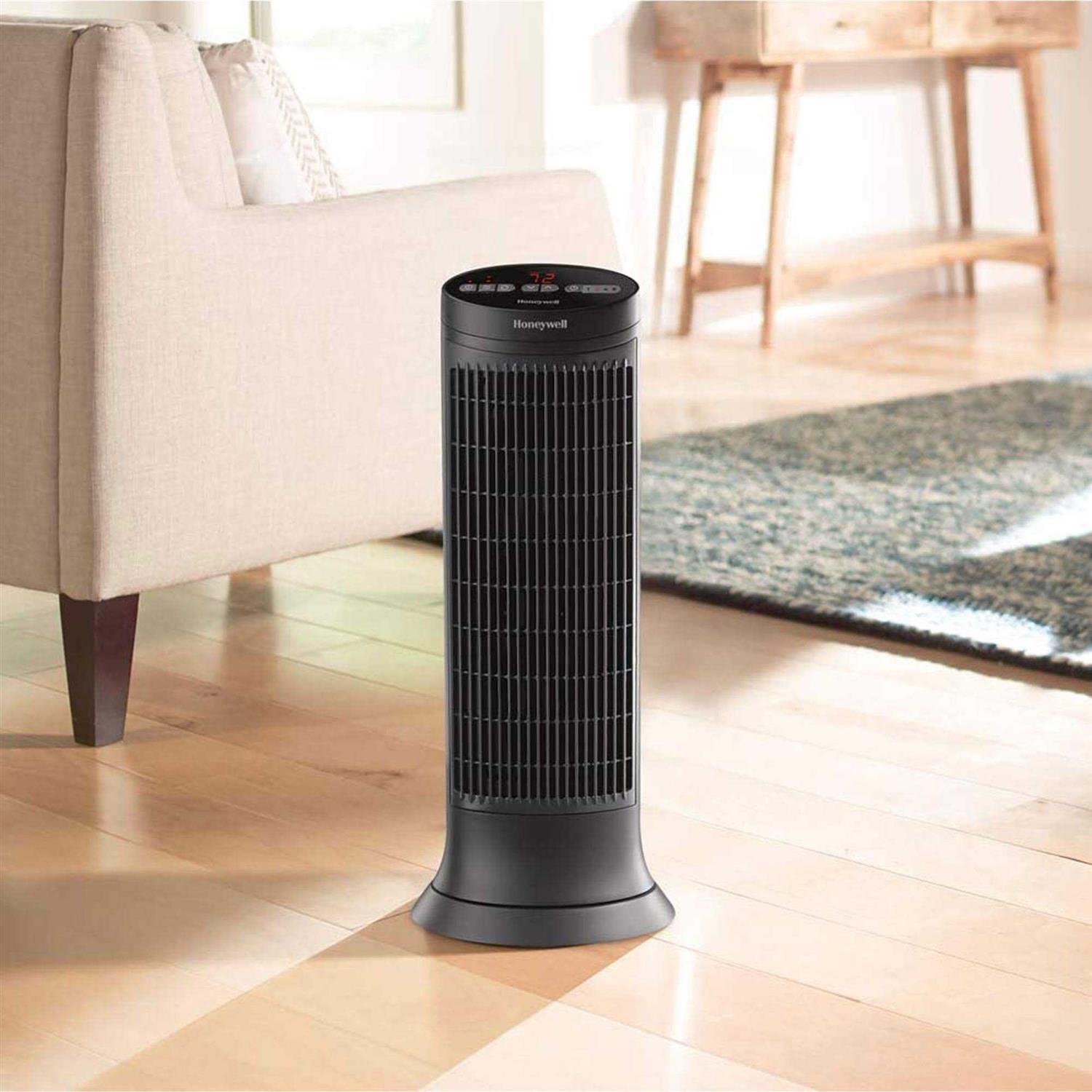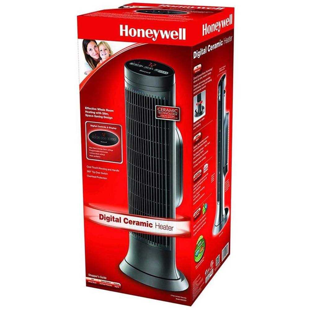 A permanent dust filter and the capacity to oscillate heat into wide areas of space make this unit an excellent addition for medium to large sized rooms. Honeywell has also included its signature for safety by incorporating a number of beneficial feature.1500 watts.Color: Dark Grey.Product Dimensions: 8.7 x 6.7 x 21.6 inches.3 year limited warranty.Easy to use digital controls with large temperature display..2 heat settings include Max Heat and Energy Saver.. Energy efficient programmable thermostat..1-8 hour timer settings..360 degree tip over switch.. Overheat protection.. Cool Touch housing & handle.. Sturdy base.. Quick & easy personal warmth with powerful ceramic heating technology.. Slim, space-saving, modern design fits any home decor.. Recessed, convenient carrying handle.. Eco friendly model uses 17% less plastic (than comparable Honeywell HZ-3750 heater).. Permanent filter helps prevent dust and particles from entering the heater.. Honeywell’s Ceramic Compact Tower Heater is an increasingly easy to access portable heater that features an abundance of user-friendly additions. Digital controls and a large LCD display allow for seamless navigation and a hassle free approach to adjusti Color: Grey.