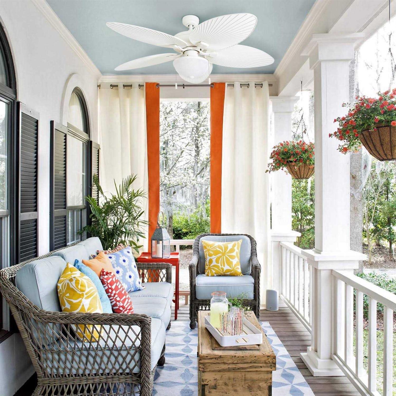 There’s no greater place to be than in the comfort of your own home. Whether it’s indoors or outside the Honeywell Inland Breeze Ceiling Fan is the perfect companion. The enclosed bowl light and damp-rated housing ensure your readiness for outdoor weather while the stylistic wicker and rich bronze finish will have you prepared for any scenario. The white scavo glass brings a very crisp and wholesome allure making this ceiling fan ready for your home. The blades come with two designs one on each side. The first side holds the traditional wicker pattern while the other houses a tropical palm leaf. Overall the Inland Breeze 52-inch Tropical Outdoor Ceiling Fan is sure to liven up any area including your front patio while leaving each of your guests in awe.