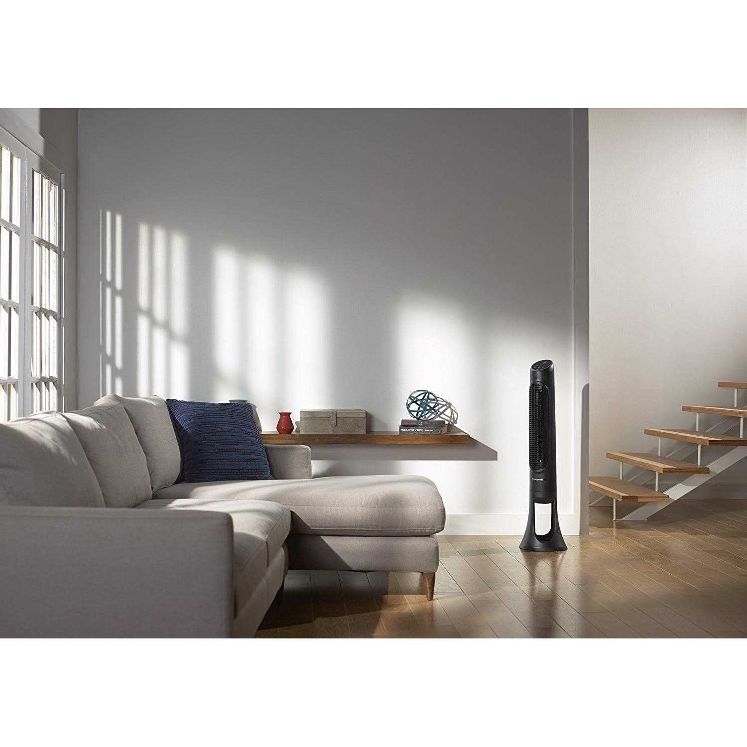 The Honeywell QuietSet Tower Fan features five speeds that are customizable and range from sleep to power cool settings. The lights on the control panel automatically dim after 15 seconds, making it ideal for nighttime use as well. This slim tower fan has touch-button electronic controls that are easy to use. A remote-control nest has also been included. The slim design of this unit is convenient because it does not take up too much space. The oscillating tower fan has a sturdy and durable base that is easy to setup, requiring no tools. Combining the very best aspects of strength and silence, the Honeywell QuietSet Whole Room Tower Fan can produce whole room cooling for any number of medium to large sized rooms. This whole room fan includes QuietSet speeds that range from sleep to power cool (5 speeds in total). These speeds can be accessed via Easy Touch Controls on a control panel that automatically dims after 15 seconds of use. The sum of these two features allows for seamless nighttime operation. The slim design of this tower fan paired with its black finish opens a wealth of installation settings. The Honeywell QuietSet Whole Room Tower Fan’s inclusion of 5 speed settings and accessibility via touch controls (remote control included) make it a natural addition for any number of rooms in the home setting.