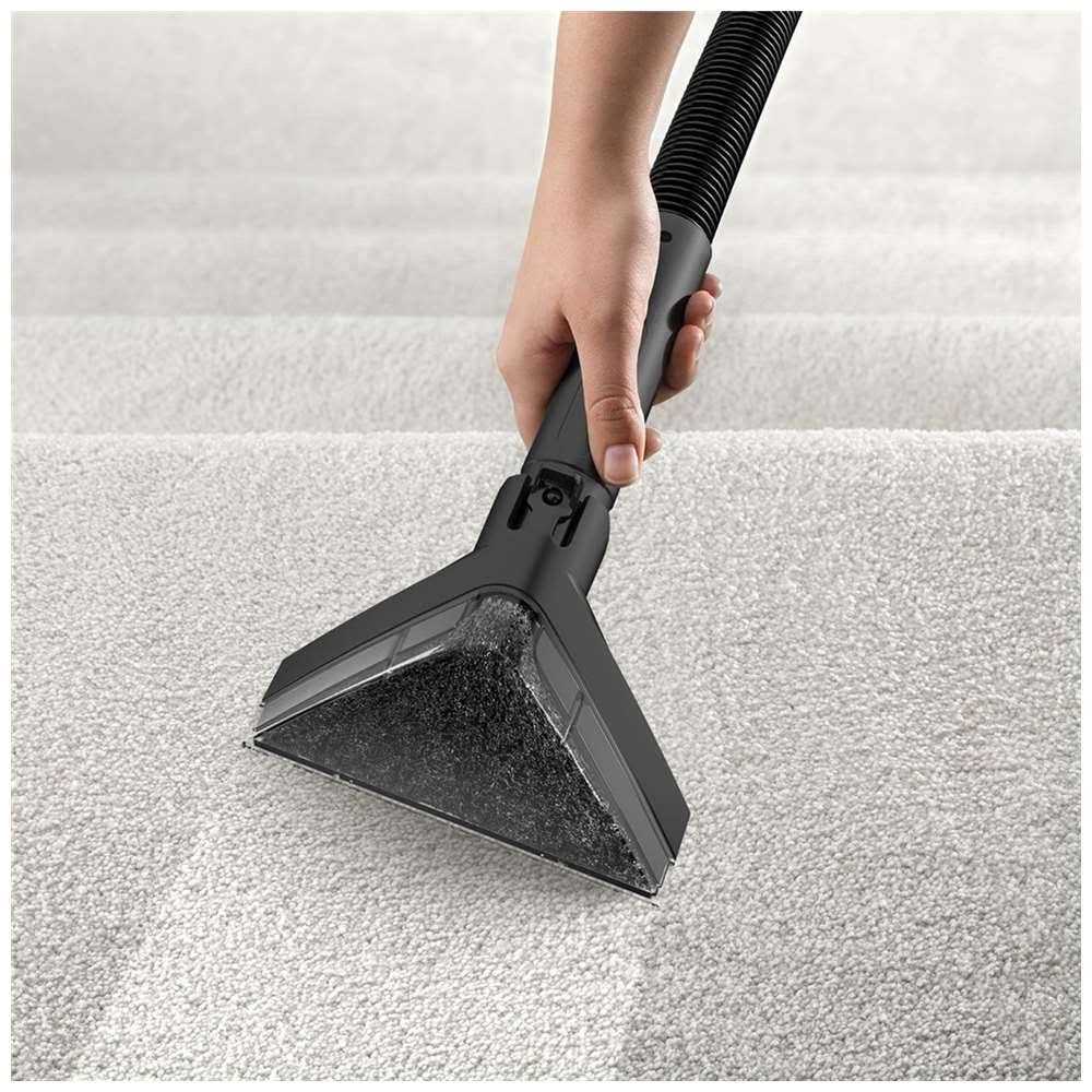 Lightweight weighs less than 19 pounds Exclusive SpinScrub Technology 360 degree cleaning surrounding carpet fibers. Counter rotating brushes spin not roll for constant carpet contact. Brushes are removable for easy cleaning 8′ Ready-To-Use Hose and Upholstery Tool to deep clean stairs and hard-to-reach areas Easy to Fill Empty Clean with Smart Tank system making emptying and filling easy with no mess no tools and no waste of time. The recovery tank comes with a quick pour spout Fast Dry Time with forced heated air Help extend the life of your carpet with the Turbo Scrub Carpet Cleaner. Designed to clean many carpeted and fabric surfaces in and around your home. Make cleaning a breeze with spill free tanks that are easy to access easy to fill empty and clean. The Turbo Scrub features SpinScrub multiple brush system.