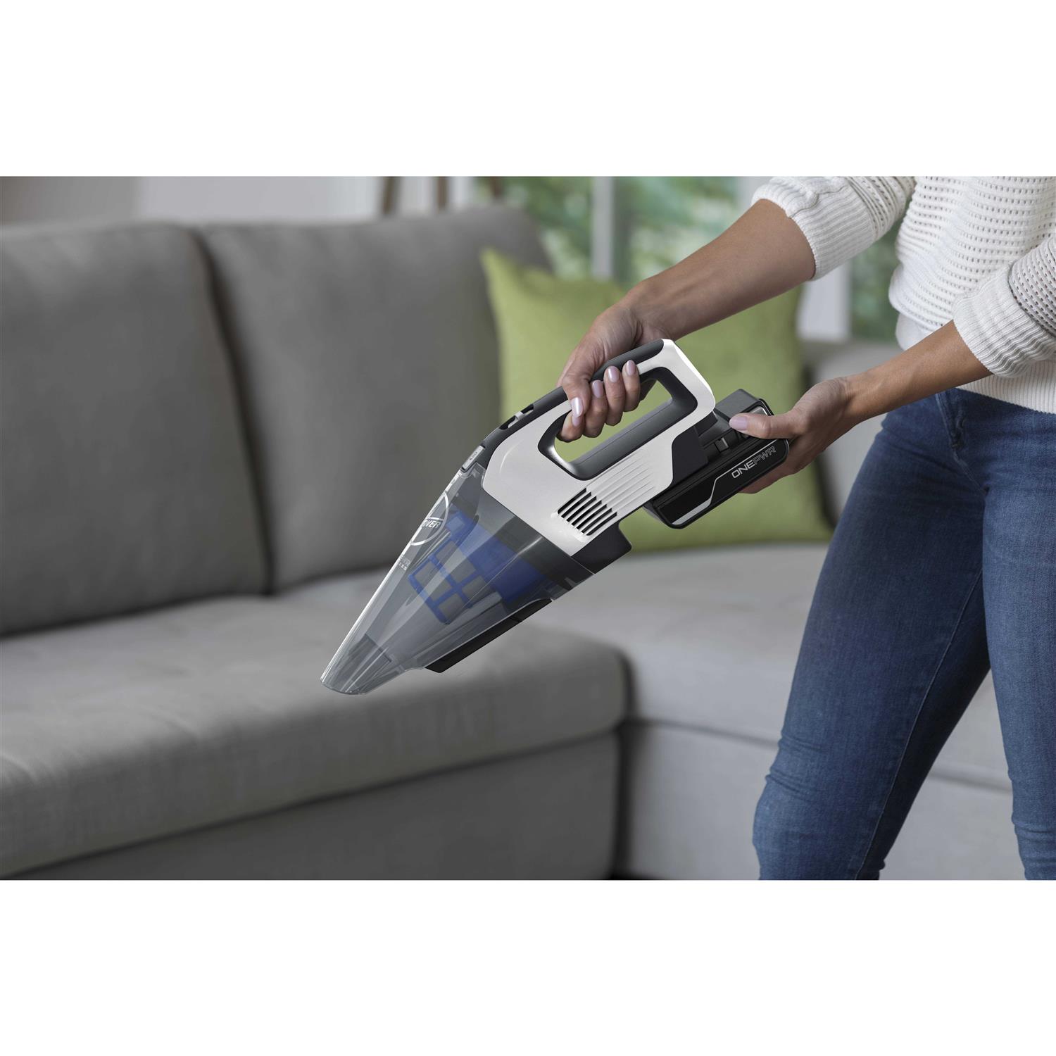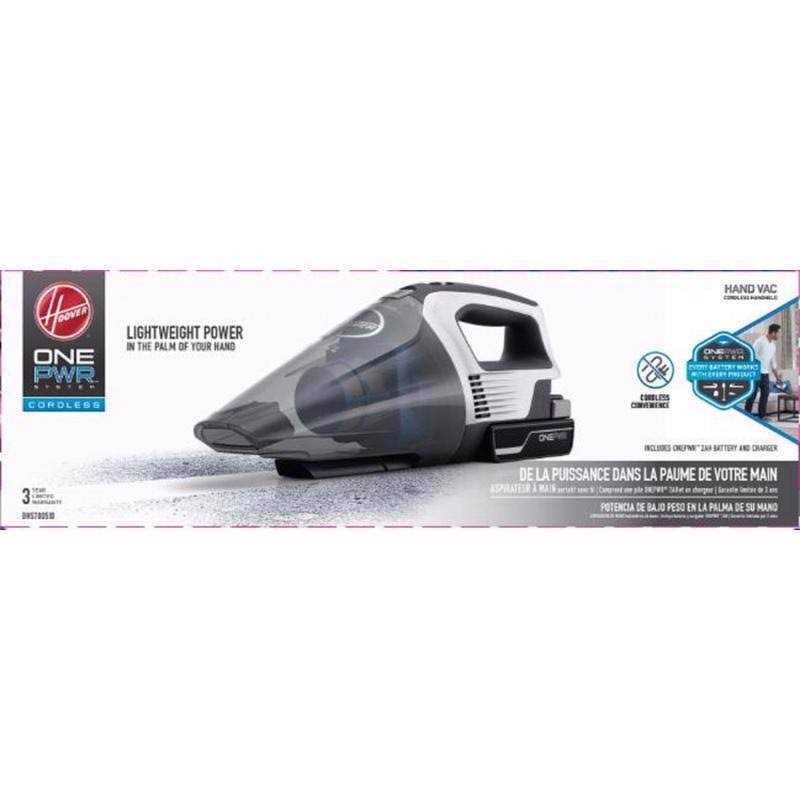 Make cleaning nooks and crannies easier with this HOOVER ONEPWR cordless hand vacuum kit. The large capacity lets you take on hefty messes before having to empty, and the cordless design provides tremendous range. This HOOVER ONEPWR cordless hand vacuum kit features a filter that can be rinsed for simple maintenance. Bagless technology Saves time and energy with no bags to buy or replace. 20V lithium-ion battery Provides up to 13.2 minutes of run time per full charge. On-board crevice tool Tackles dirt in hard-to-reach areas. Powerful suction Perfect for quick pickups. Cordless technology Delivers cord-free convenience powered by the removable and rechargeable ONEPWR battery. Lightweight design Helps you transport the vacuum from room to room and floor to floor.