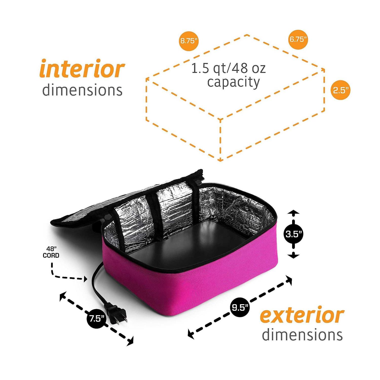 • Accommodates containers approx. 8.75″ W x 6.75″ L x 2.5″ H or 1.5 quarts of food.