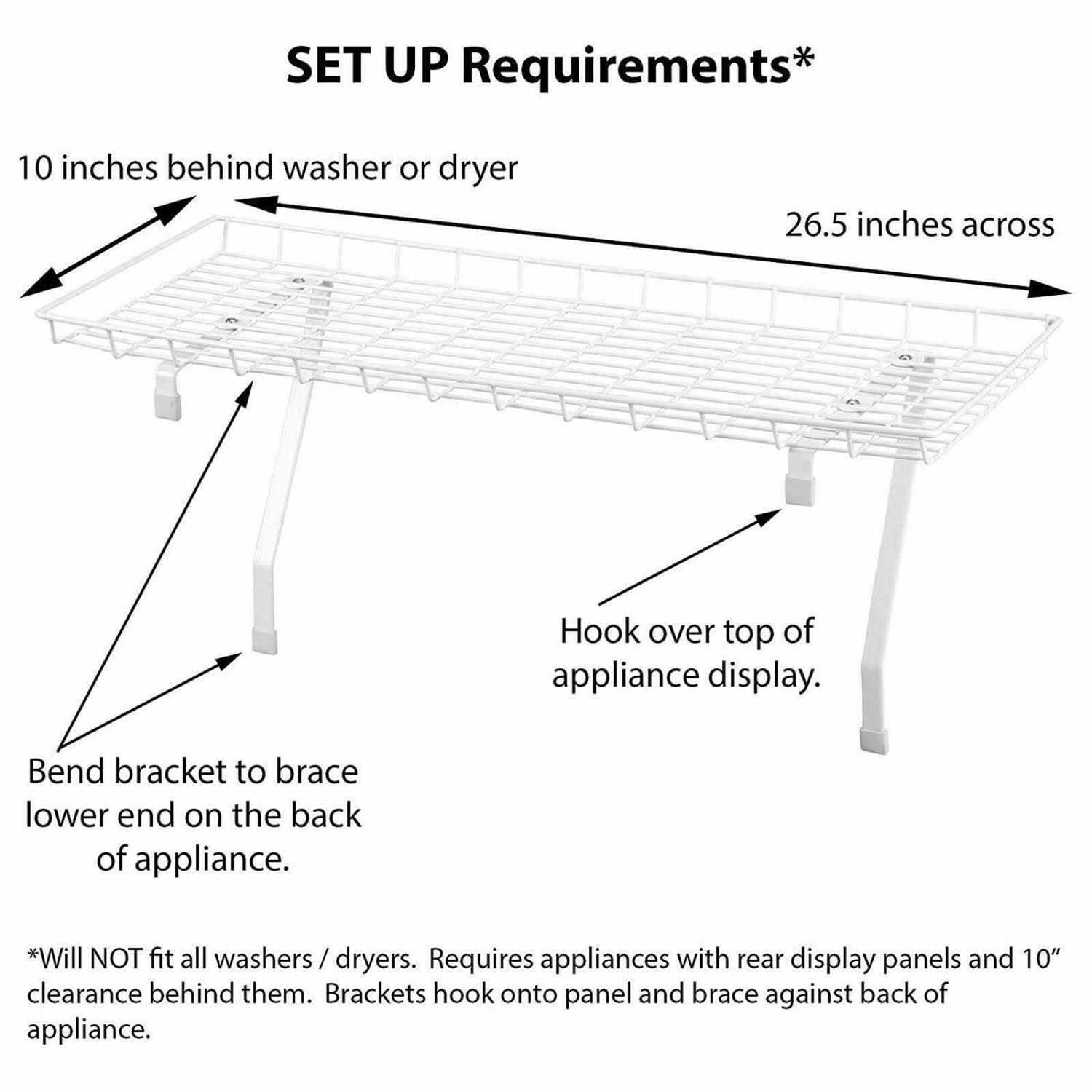 Stop knocking over boxes and bottles and declutter the top of your dryer with Household Essentials Laundry shelf. Household’s space saving rack, vinyl coated so it won’t scratch your appliances, mounts over the top of your washing machine or dryer. Keep detergent and stain remover always within reach, and have your machine tops free to transfer laundry or for folding directly out of the dryer! With a lip on the front of the shelf, your gear won’t tumble, even if your machine starts to rumble. Control panel required for use.
