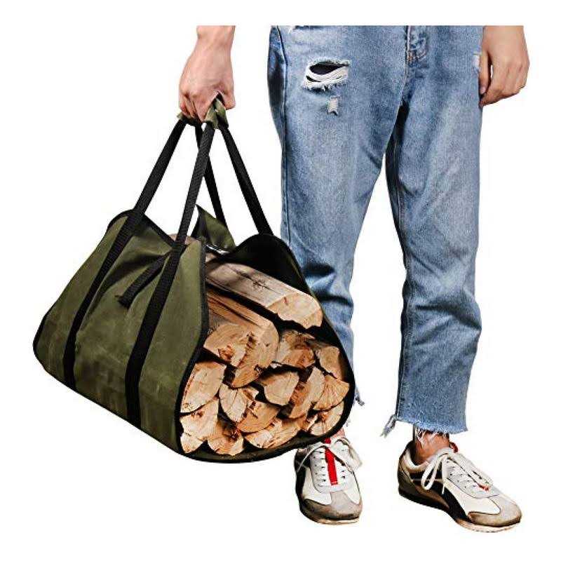 - The firewood bag carrier is made of heavy duty waxed canvas which make the carrier water resistant.