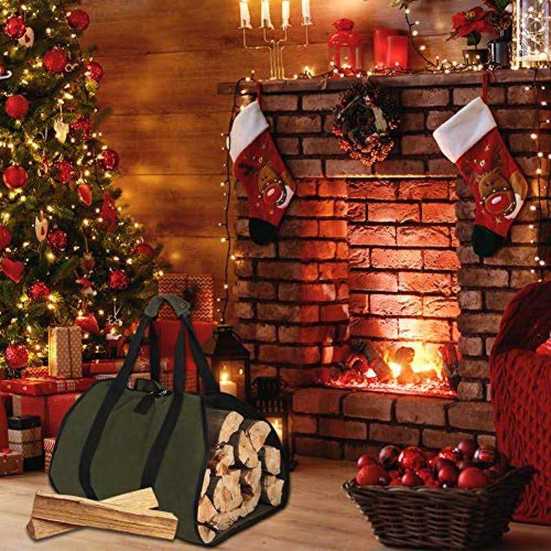 HRX Package Waxed Canvas Firewood Bag Carrier Water Resistant Log Tote Wood Carrying Bag With Handles for Camping Trip Christmas Gift
