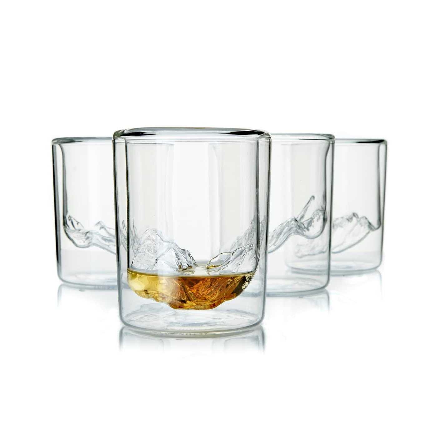 AN OUTDOORSMAN’S WHISKEY GLASS: Anytime you want to be sippin’ on the rocks, pull out these crystal whiskey glasses that feature the world’s most iconic mountains EXPERTLY HAND BLOWN: Each Whiskey Peaks tumbler is hand blown by expert craftsmen from 100% lead-free glass. Whichever mountain range you choose, Whiskey Peaks will keep you inspired and sipping “on the rocks” whenever 5 o’clock calls. A whiskey glass set worthy of a spot on any outdoorsman’s bar cart. Anytime you want to be sippin’ on the rocks, pull out these crystal whiskey glasses that feature the world’s most iconic mountains. And if you’re feeling a little more adventurous than the basics, each unique handblown glass has plenty of room for a few drams of your favorite bourbon or liquor plus any ice and cocktail mix you want to add. After last call, just handwash these crystal whiskey glasses and you’ll be ready for happy hour tomorrow evening. Pair with matching decanter for the perfect gift.