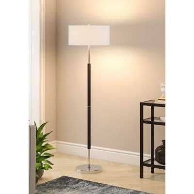 Add visual interest to any room with this two-toned contemporary floor lamp. On-trend neutral colors are perfectly paired with lustrous metallic accents to elevate your design scheme. Its generous French drum shade holds space for two bulbs to cast extra light wherever its needed. Modern finish to match any design style. Handcrafted finish in two complementary tones Make it your aesthetic. It is paired with a French Drum shade. Durable shade material The shade is in a crisp chiffon white color and is made of 100% linen with polystyrene lining for durability. Light bulb not included Rated for two 100W incandescent bulbs; 9W LED bulbs, 23W fluorescent (CFL) bulbs, or 9W self-ballasted LED bulbs. E26-base bulbs. Cord length Includes an 8 ft. cord. How to care for your lamp Clean with a soft, dry cloth; no harsh chemicals or abrasive cleaning materials.