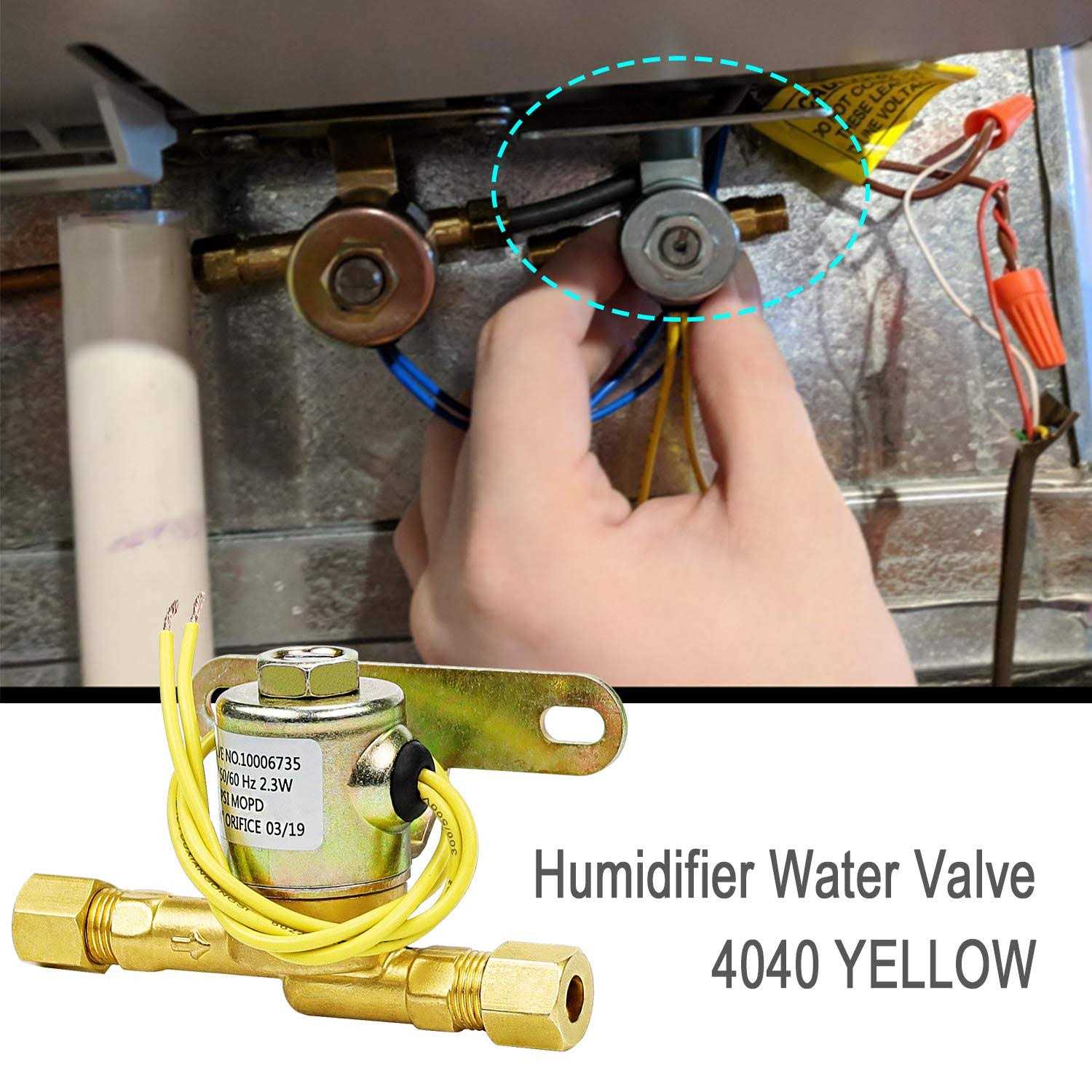Humidifier Water Solenoid Valve 4040 for Aprilaire Whole House Humidifier 400 400M 500 500M 600 600M 558 550A 550 568 560A 700M 768 760A 760| 24 Volts | 2.3 Watts | 60 HZ-Yellow Product Features Humidifier Solenoid Valve 4040 Package includes:4040 humidifier solenoid valve for Apri.laire,YELLOW.4040 humidifier solenoid valve controls the amount of water entering your for Aprilaire whole house humidifier, which can help you maintain an optimal humidity of 35% 45%, thereby reducing the occurrence of respiratory infections and symptoms related to asthma.( 24 Volts | 2.3 Watts | 60 HZ-10006735.) FITS MODELSOur humidifier water solenoid valve compatible with April.aire models 110, 112, 220, 224, 350, 360, 440, 550, 550A, 550-A, 558, 560, 560A, 560-A, 568, 600, 700, 760, 760A, 760-A, and 768. Replaces Part:A2012-S118, B2035-S2, B2035-S5, B2035-S54, B2035-S55, B2015-S51, B2015-S54, B2015-S58, B2015-S65, B2015-S68, B2015-S85, B2015-S87 10006735 ect DURABLE MATERIAOur A2012-S118 HUMIDIFIER SOLENOID VALVE is made of solid brass material, durable and sturdy, well-tested by the manufacturer.Non original aftermarket part. Fits OEM Standards! It fixed the issue with the old valve not shutting off and allowing water to run continuously EASY TO INSTALLThis humidifier solenoid valve 4040 is easy to install,You only need a screwdriver and wrench to perform repairs