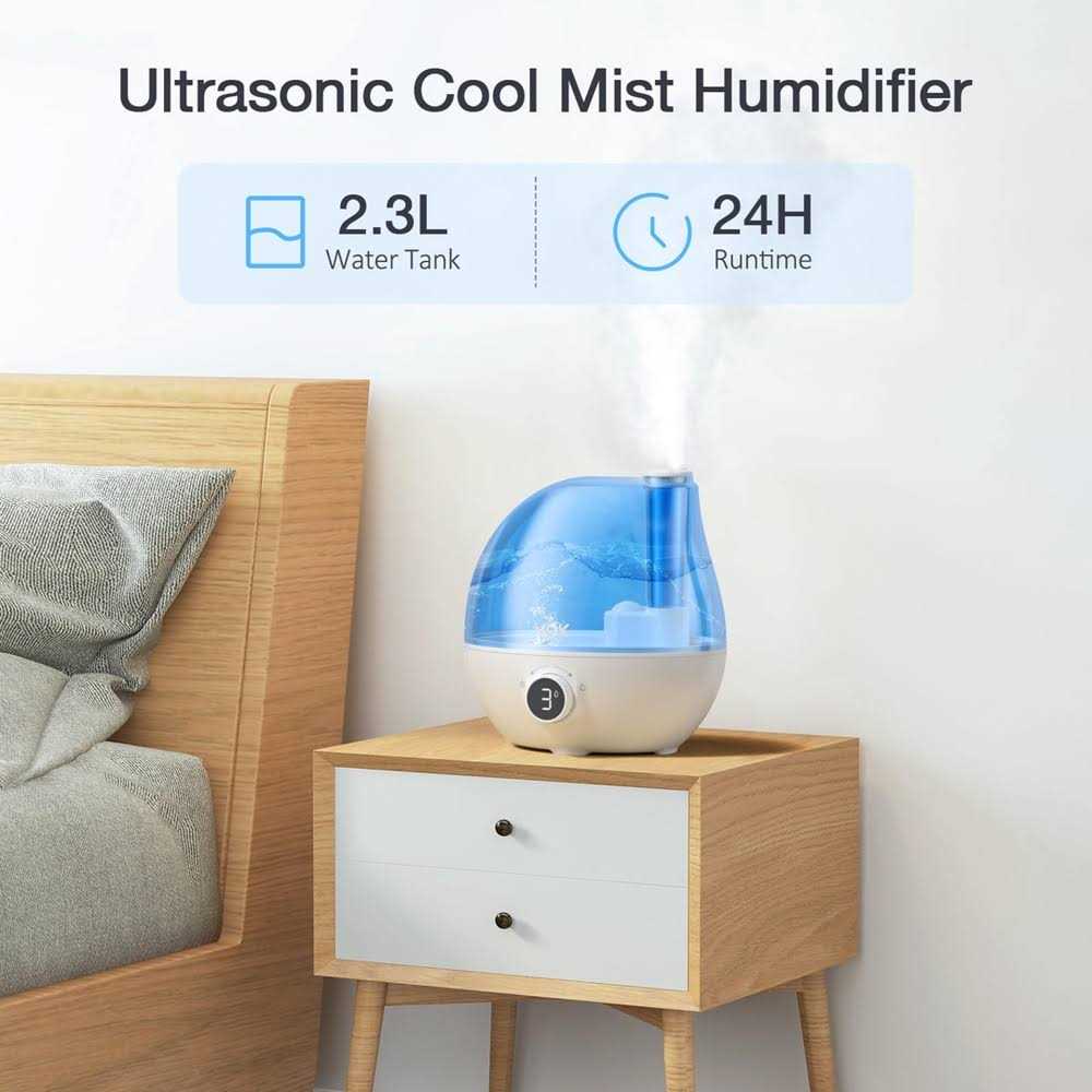 Humidifiers for Bedroom VCK 2.3L Ultrasonic Cool Mist Quiet Air Humidifier 24 Hours Run Time
