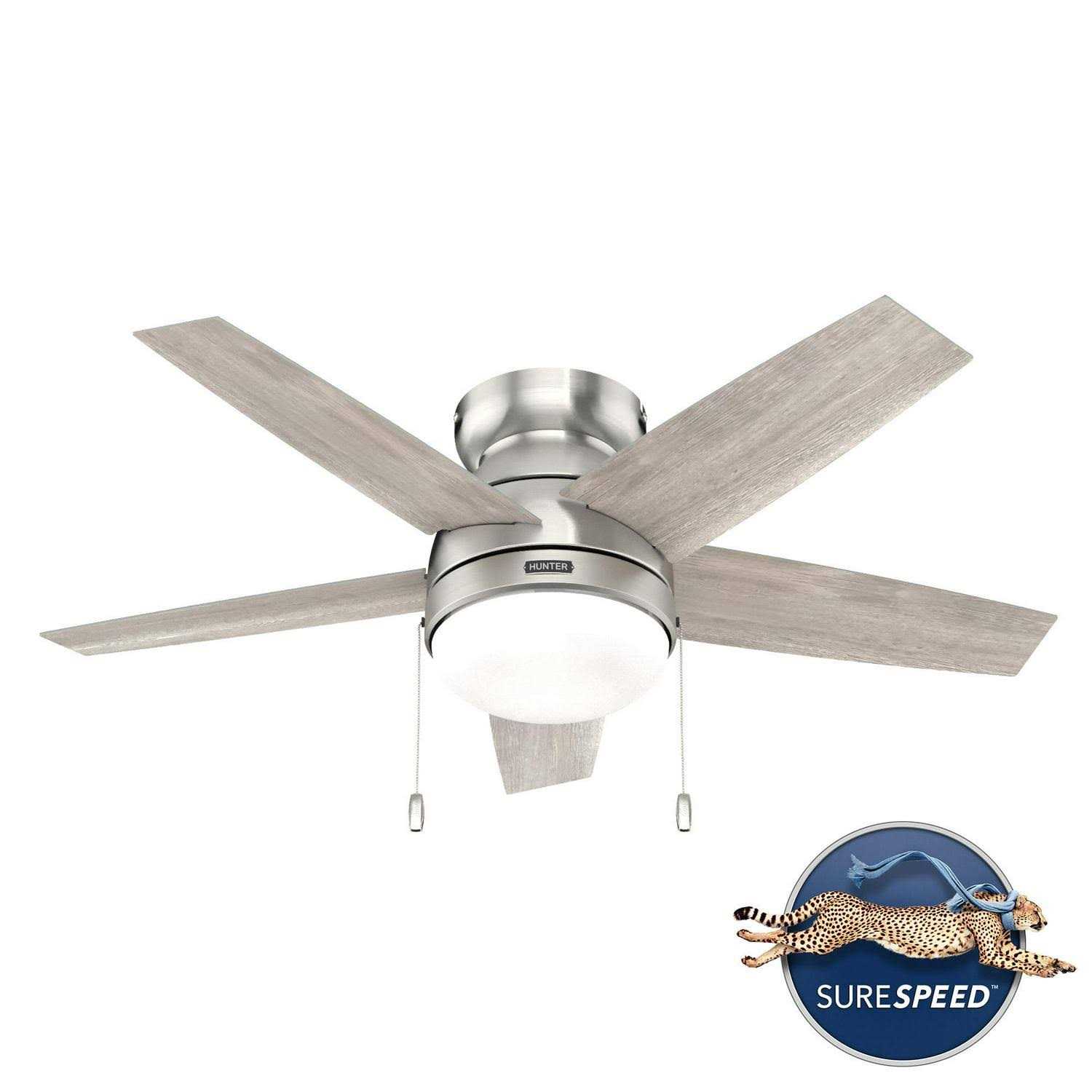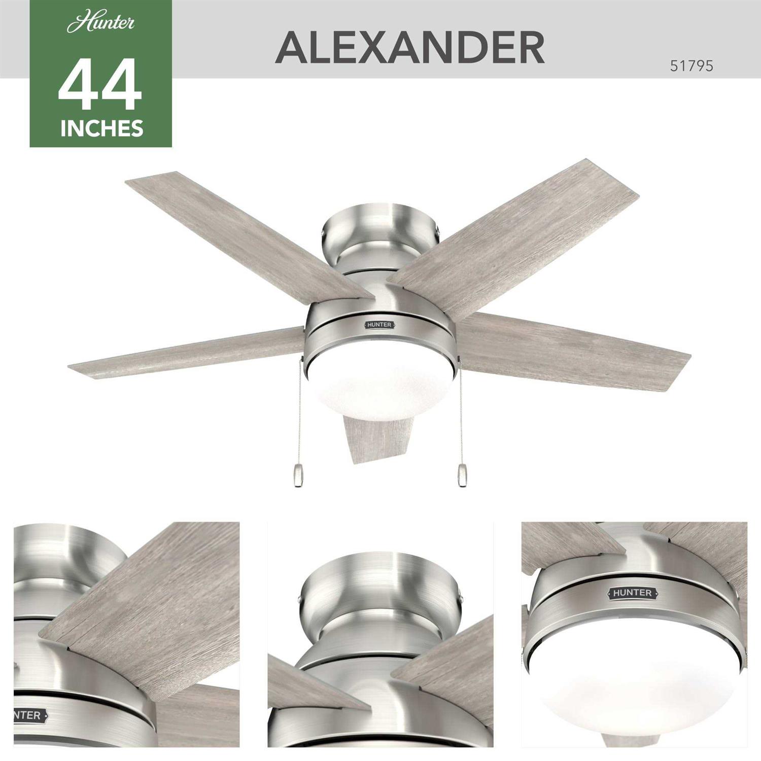Hunter Alexander 44-in Brushed Nickel LED Indoor Flush Mount Ceiling Fan with Light (5-Blade) 51795