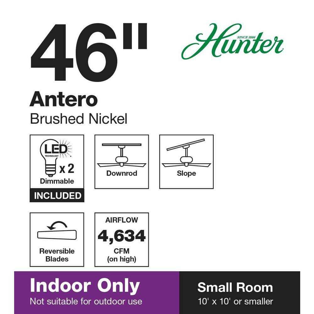 Hunter Antero 46 in. LED Indoor Brushed Nickel Ceiling Fan with Light