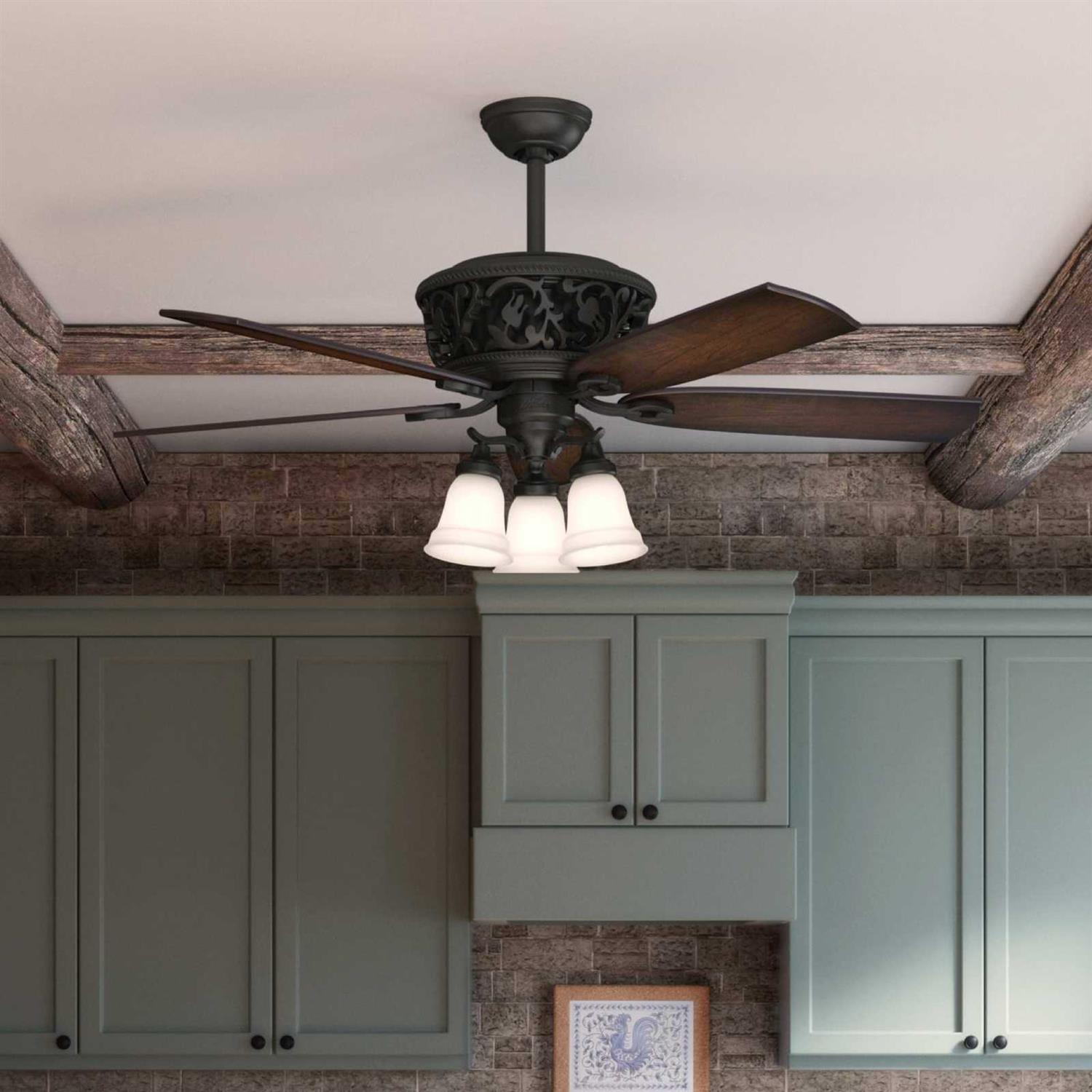 Hunter Fan 54″ Promenade-Brittany Bronze – 6527 CFM w/ Light Kit The neo-Victorian inspired Promenade’s multi-dimensional detailing brings a modern feel to classic style. The gloss black ornate pattern on the housing embraces negative space against a matte base to create depth and dimension worthy of the centerpiece to your room. Coupled with elegant blade detailing, this fan adds a fresh look to both updated traditional as well as transitional spaces. The powerful DC motor, LED light bulbs and handheld remote bring this ornate fan into a new era.