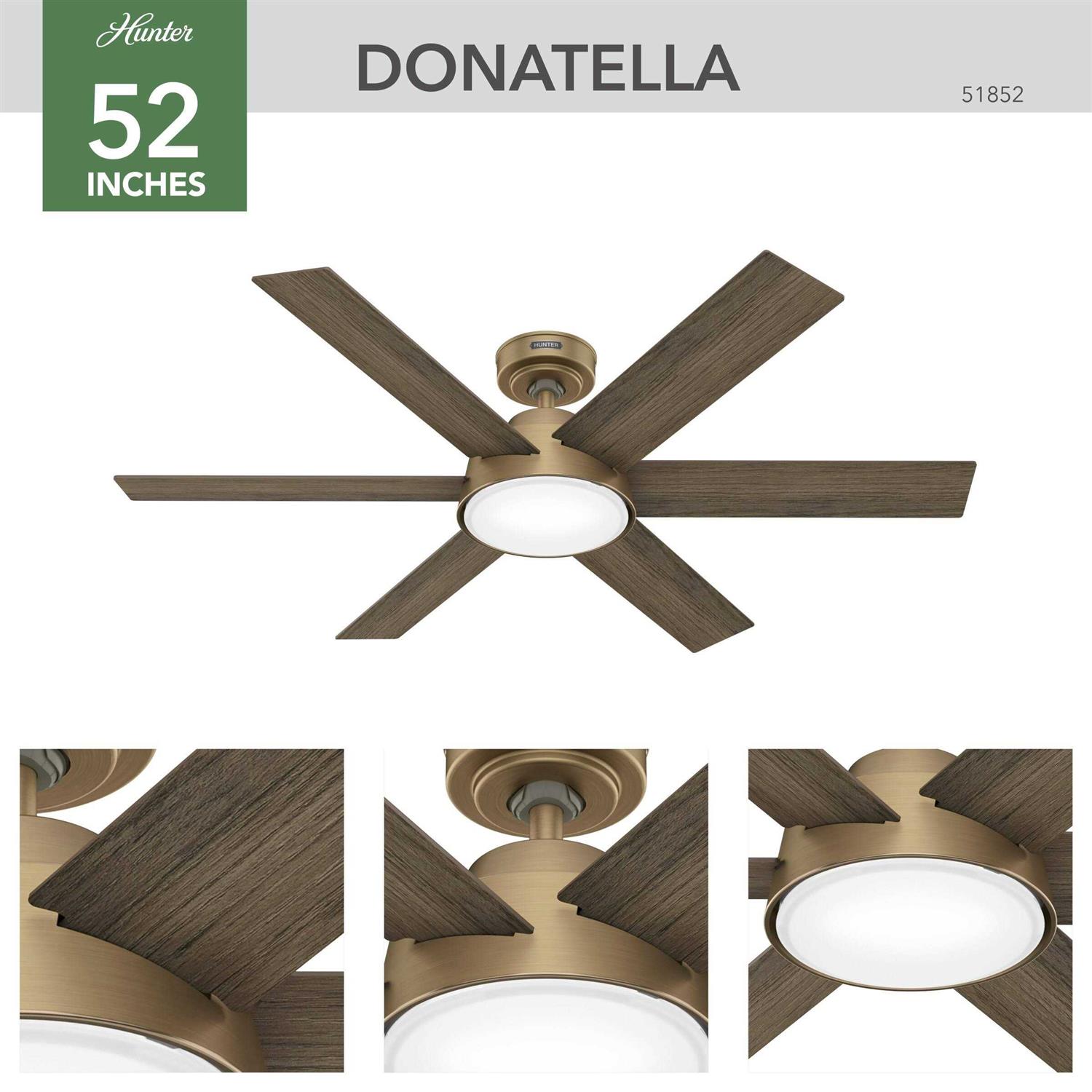 Hunter 51852 52 in. Donatella Burnished Brass Ceiling Fan with LED Light Kit & Handheld Remote