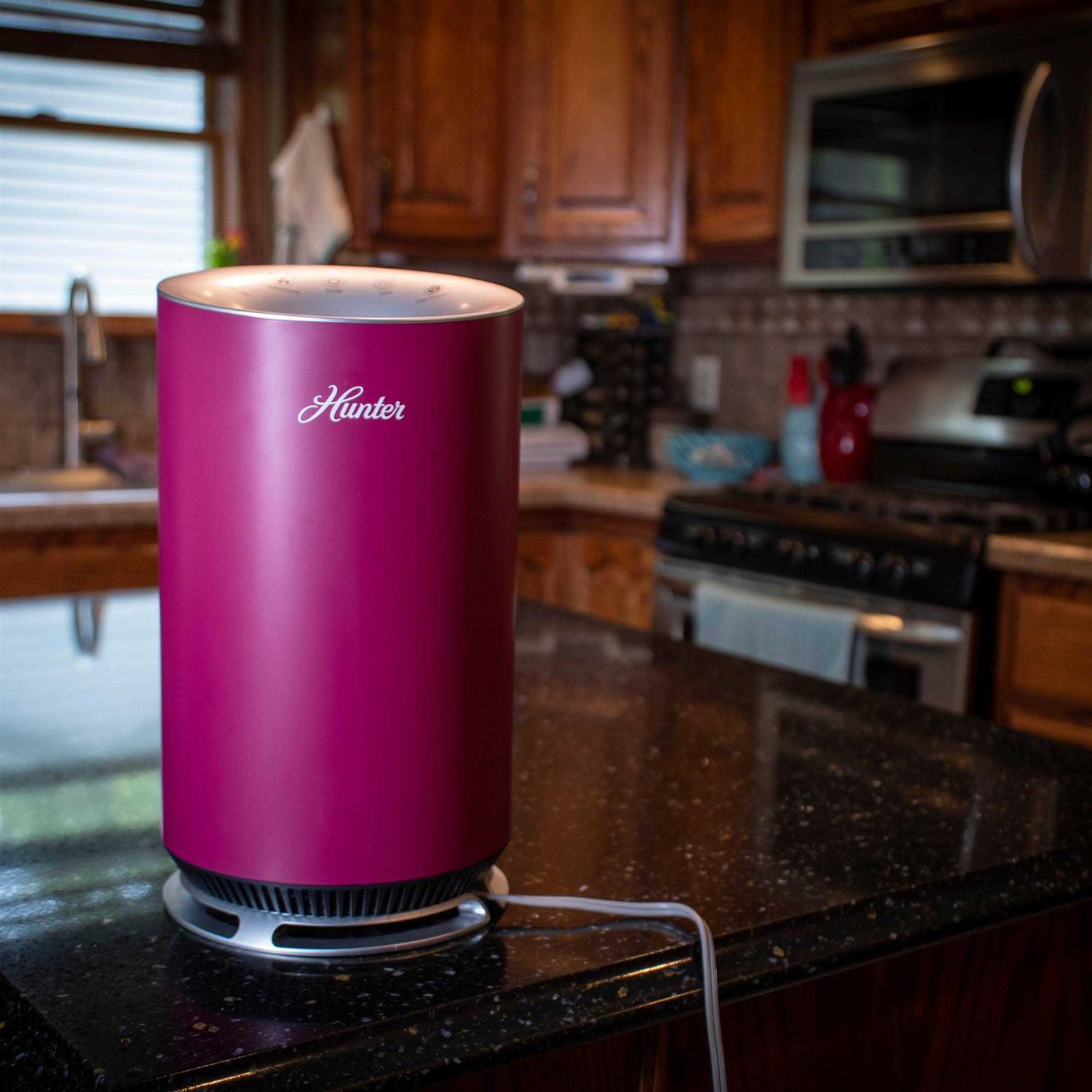 Improve your indoor air quality in style with the latest from Hunter. The compact size makes the AirX ideal for a small bedroom, bathroom, kitchen, counter, office, travel, camper, or hotel room. The AirX air purifier from Hunter features a 3-stage filtration process that is ideal for allergy and asthma symptom relief.