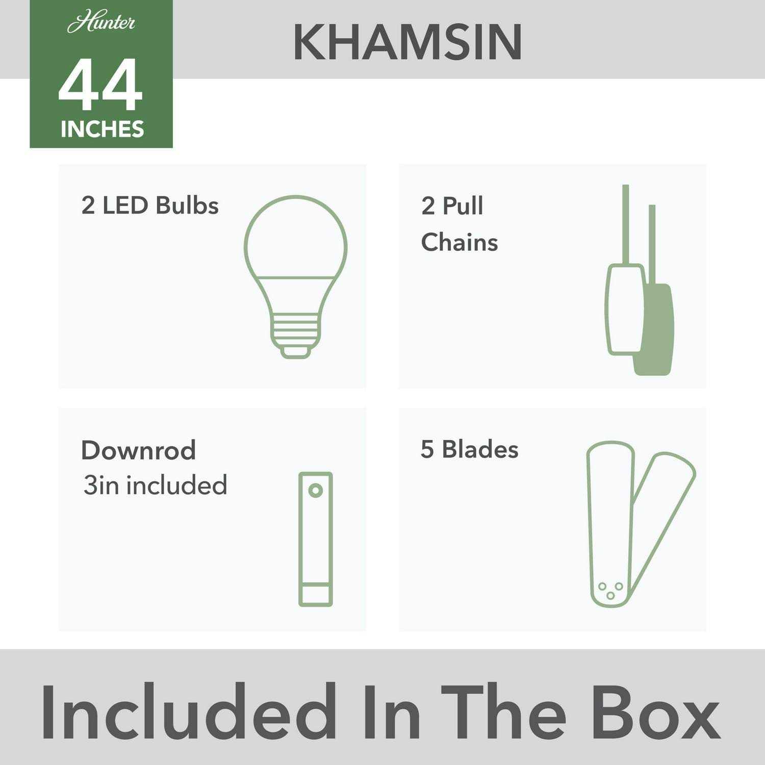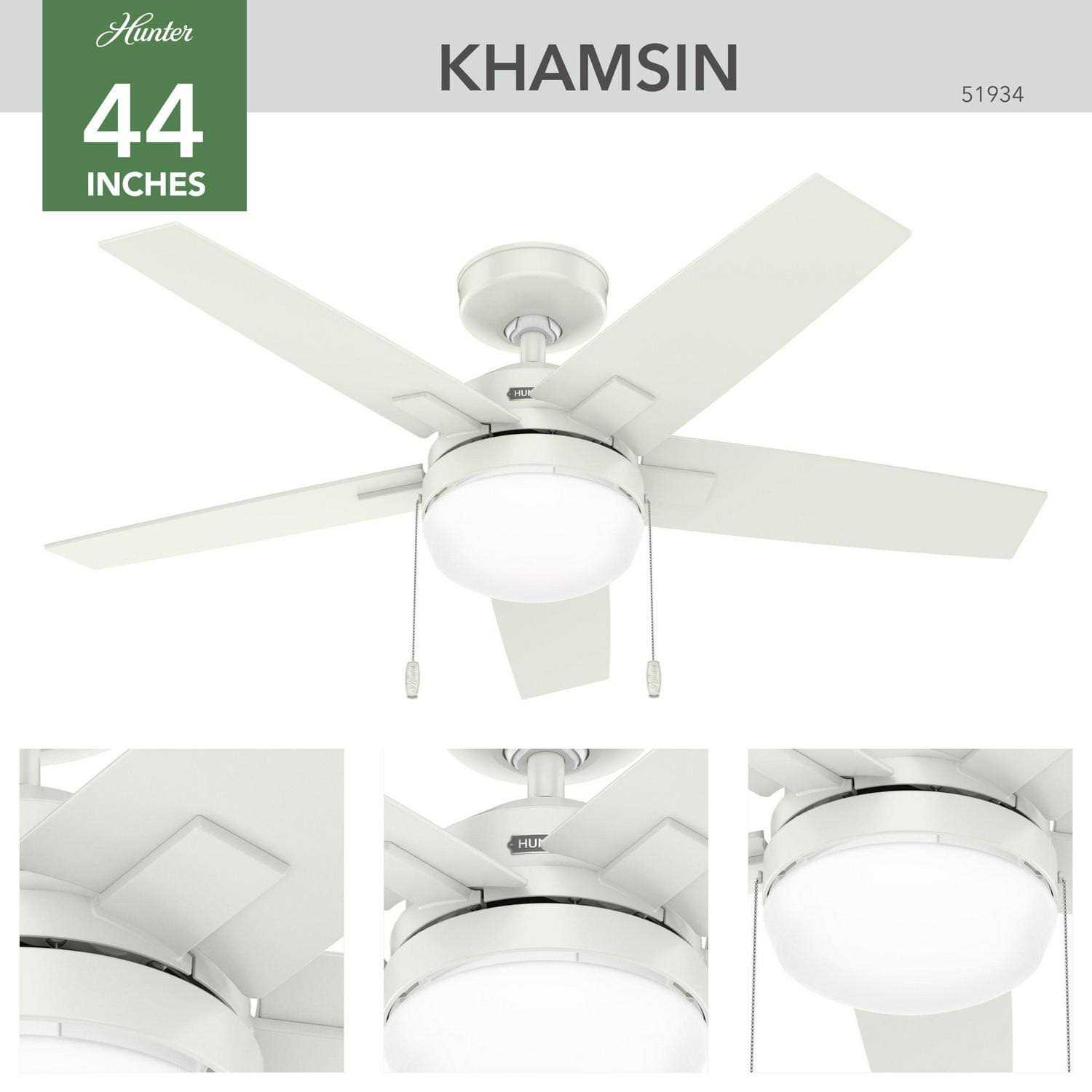 Hunter Khamsin 44-in Fresh White LED Indoor Ceiling Fan with Light (5-Blade) 51934
