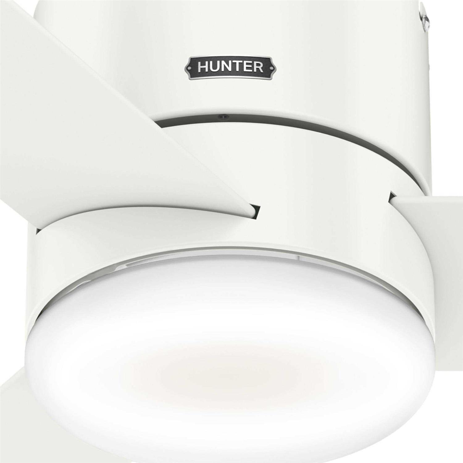 Three blades and a three-speed WhisperWind motor optimize the airflow in your home. Simply adjust the settings with the fan’s handheld remote. Thanks to the dimmable, energy-efficient LED light, you can also use the remote to create ambiance in your home.This ceiling fan is designed to install flush against your ceiling, so you don’t have to worry about downrods. To find the right ceiling fan for your kitchen, laundry room, or guest bedroom, choose from available finishes and blade colors. Hunter Fan traces its origins back to 1886 when John Hunter and his son, James Hunter, maked the first water-driven celling fan in upstate New York. Today the company blends 19th century craftsmanship with innovative designs and technology to make fans of unmatched quality, style, and performance. Hunter Fans now has offices in three countries and retail outlets around the world. Hunter Fans offers style, comfort, and health for you and your family. Their fans are handcrafted from the finest materials to last a lifetime. Hunter ceiling fans function perfectly and always deliver proven performance. They also offers air purifiers and humidifiers to make a truly healthy environment for your family. Hunter fans are as beautiful as they are whisper-quiet and efficient.