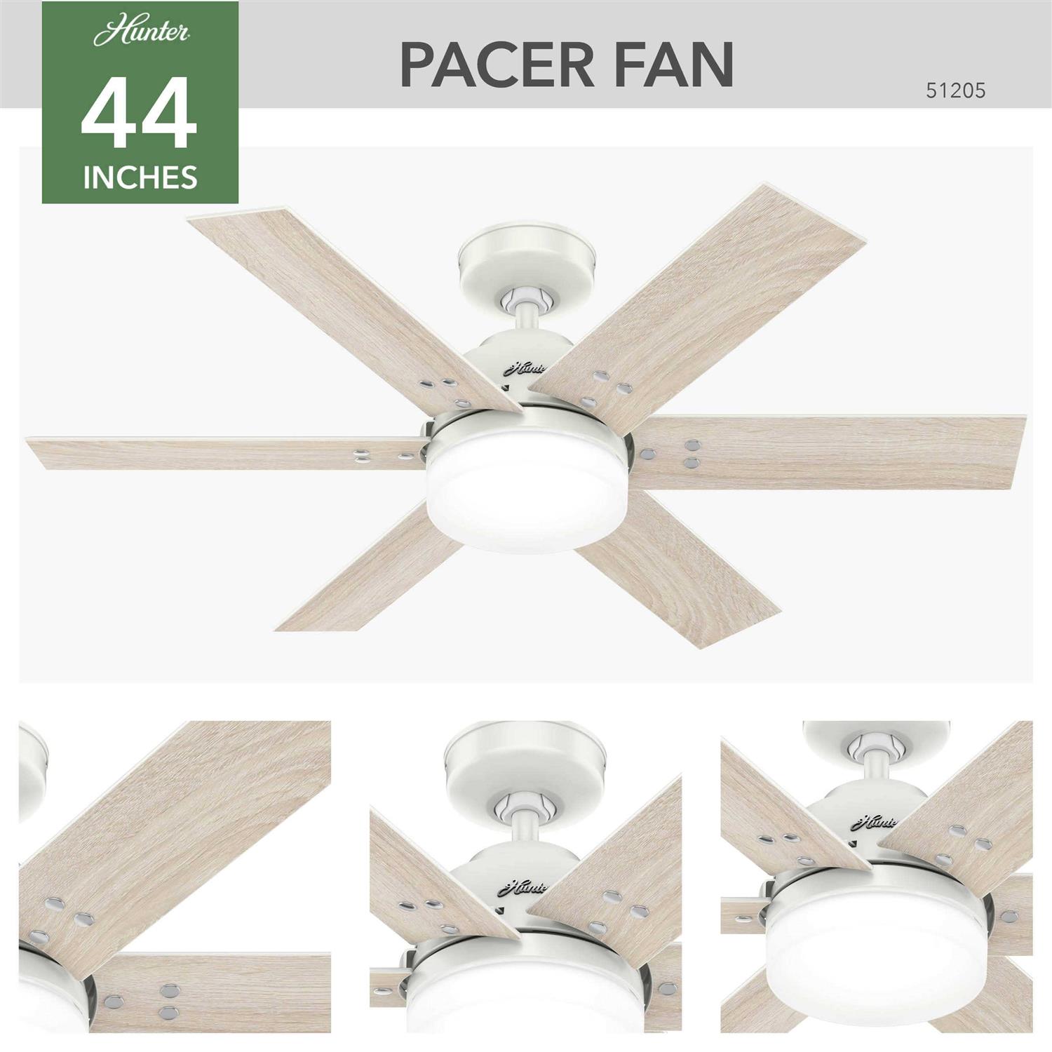 Hunter 51205 Pacer with LED Light 44 inch Ceiling Fan in Fresh White