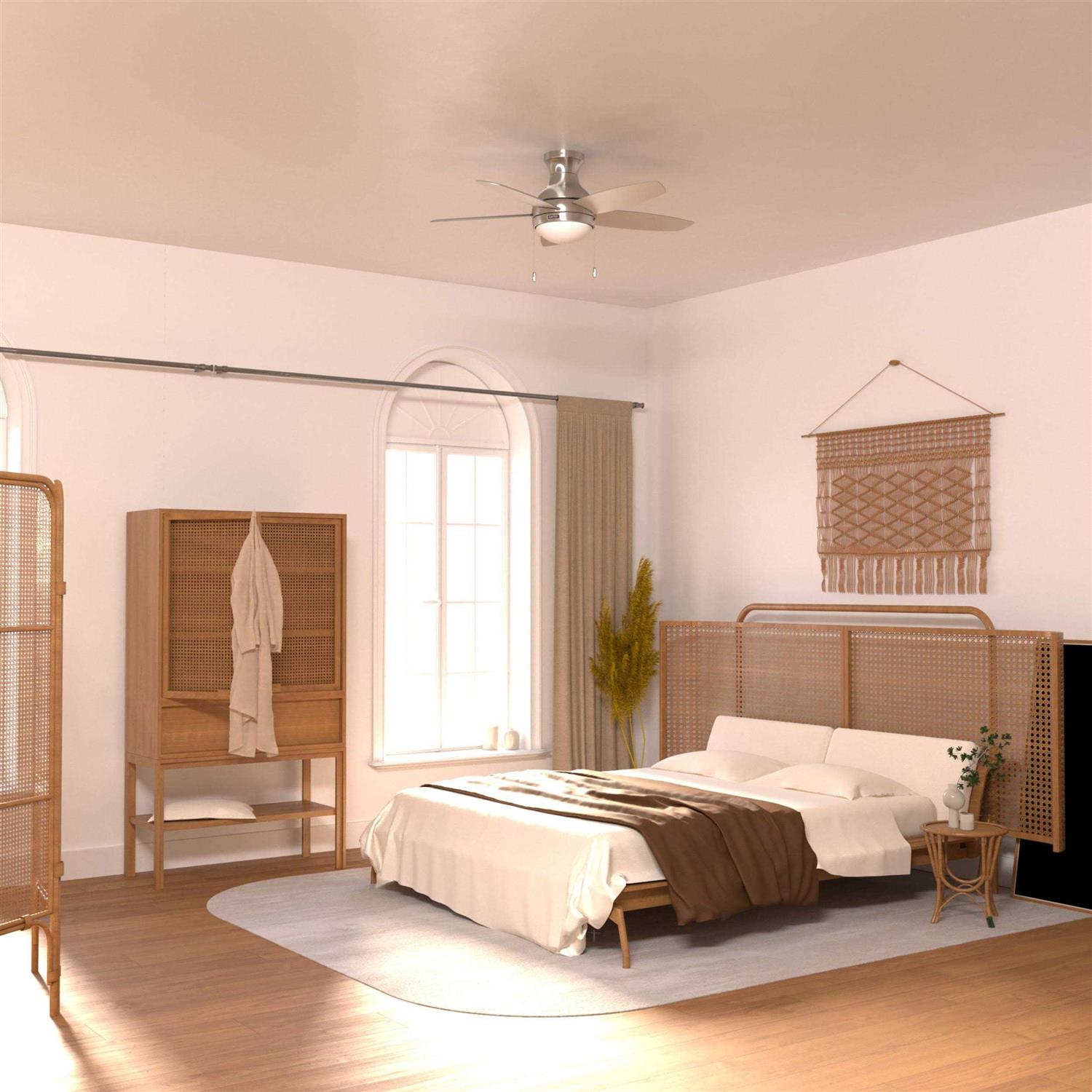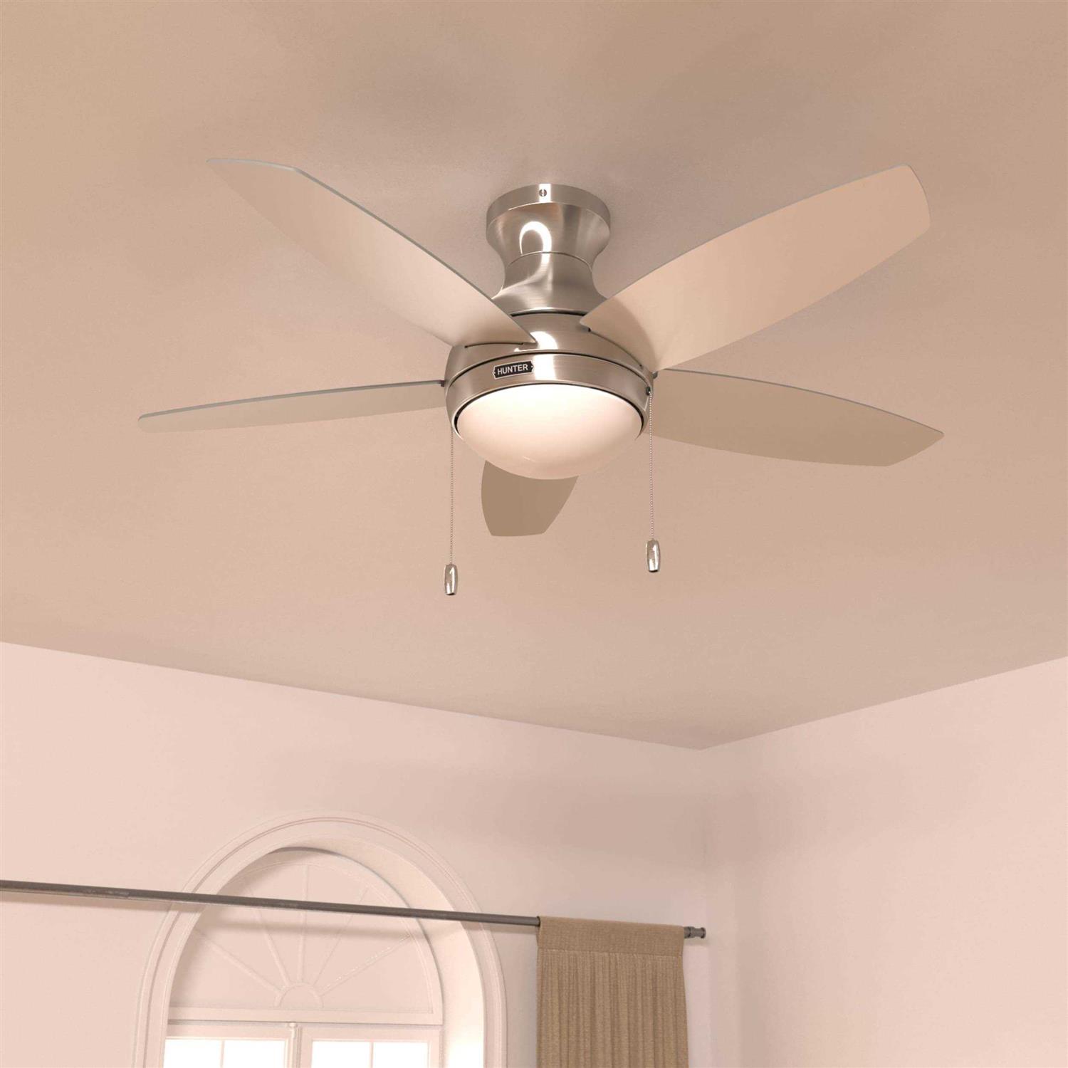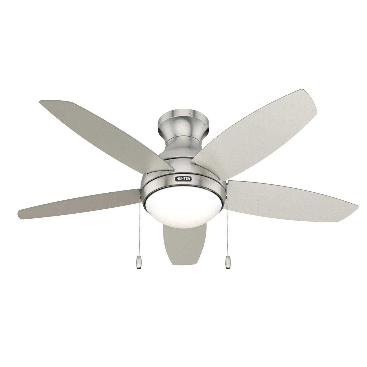 Hunter Quartino 44-in Brushed Nickel LED Indoor Flush Mount Ceiling Fan with Light (5-Blade) 51870