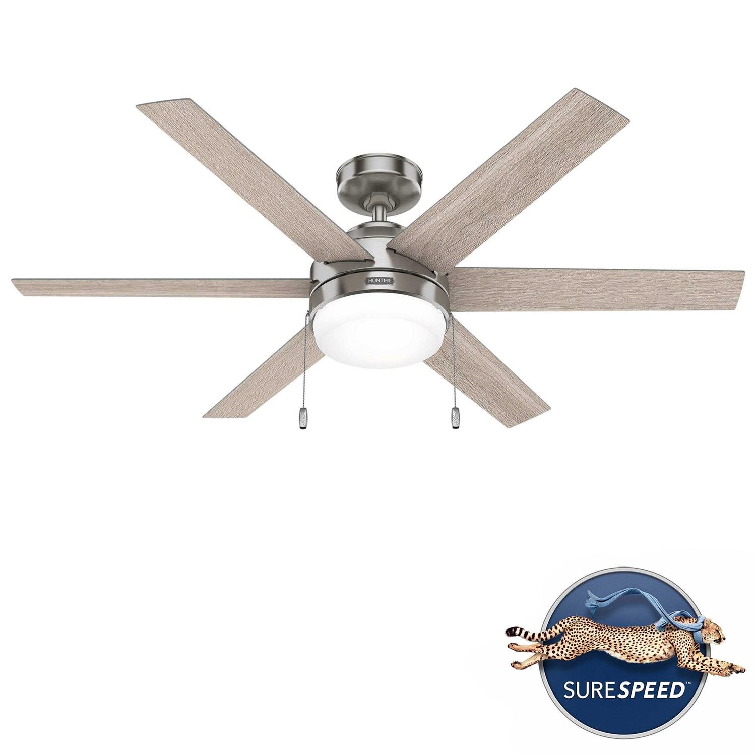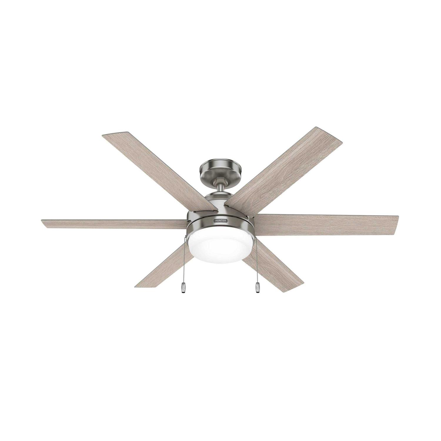 Hunter Tustin 52-in Brushed Nickel LED Indoor Ceiling Fan with Light (6-Blade) 51405