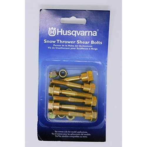 The Husqvarna Snow Thrower Shear Bolt Kit is a genuine Husqvarna replacement part. This kit is best suited for your 2008 or newer Husqvarna 2 stage snow throwers.This kit includes 6 durable shear bolts and nuts. Each bolt head is 0.5 inch big, the shoulder is 0.46 inch around, and the full shear bolt is 1.56 inches long. Clear up the channels and line up the holes on your snow thrower, and these bolts will be a snap to install. Much better than ordinary bolts, these shear bolts won’t break and damage the inner gears of your machine. Save money from costly repairs by using the Husqvarna Snow Thrower Shear Bolt Kit.