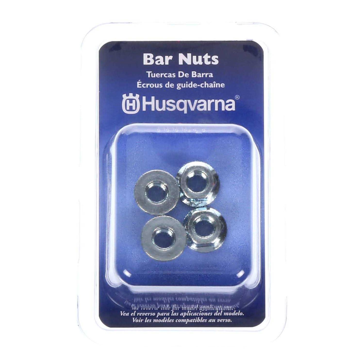 Maintain chainsaw performance with original manufacturer replacement guide bar nuts. Includes 4 bar nuts compatible with standard 13mm scrench. For proper retention features a flange side. Fits most Husqvarna chainsaws. Made in the USA.