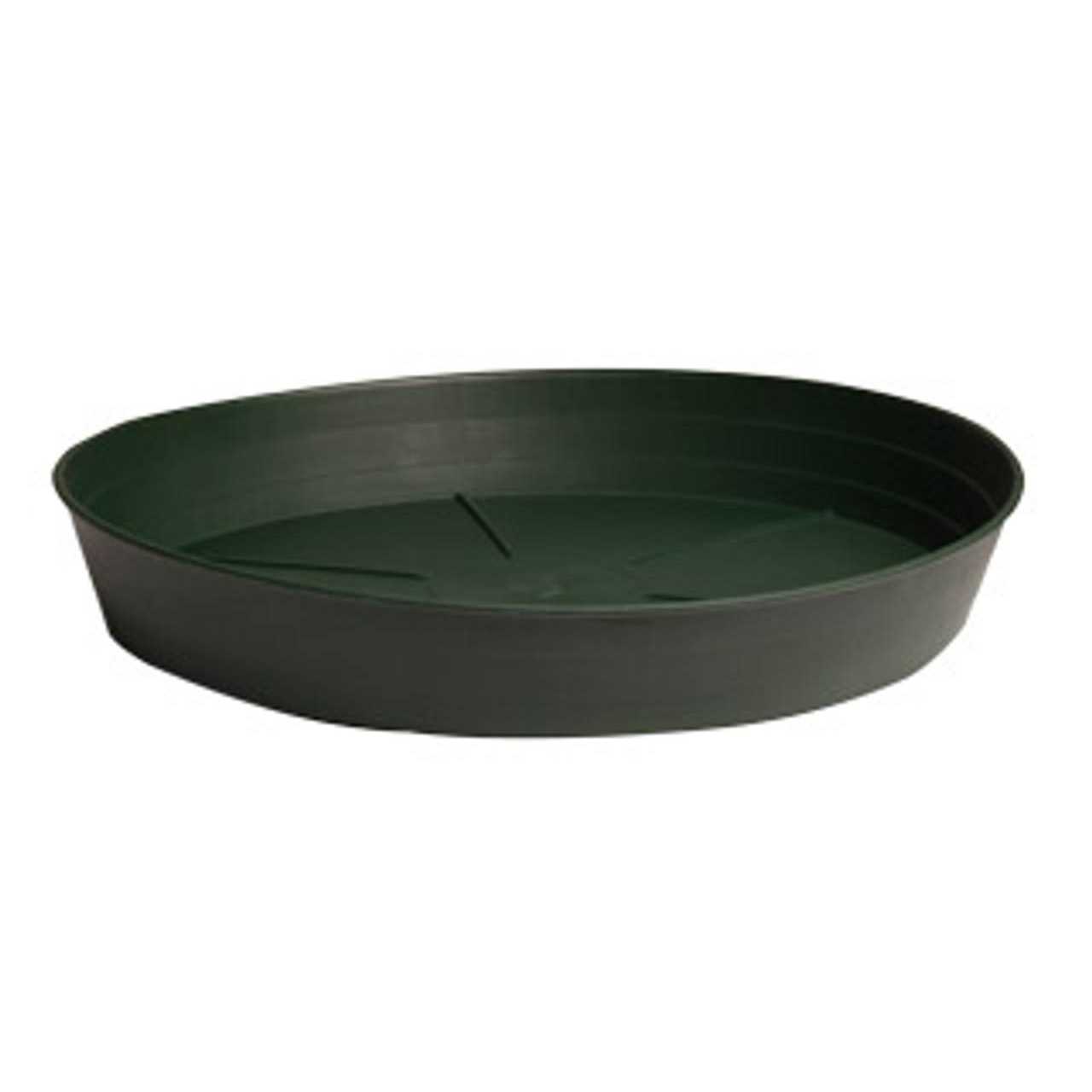 These sturdy and reusable green saucers come in various sizes to match most pots. Use them to collect excess water drainage and soil spillage. Implementing saucers into your growing program helps keep plants moist longer and maintains a cleaner garden. Features Comes in convenient packs Ribbed bottom keeps plant out of water and prevents plant from sticking to saucer Checking water levels is a snap Sturdy, rugged, and reusable Protects floors and decks from water Listed diameter is measured from the inside of the bottom of the saucer.