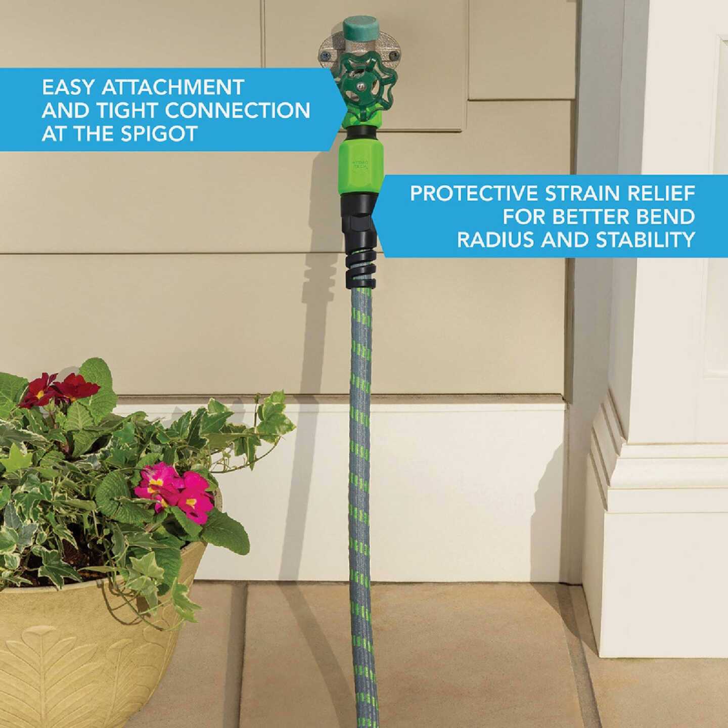- The tough Nylon connector resists rust and creates a tight seal to the spigot