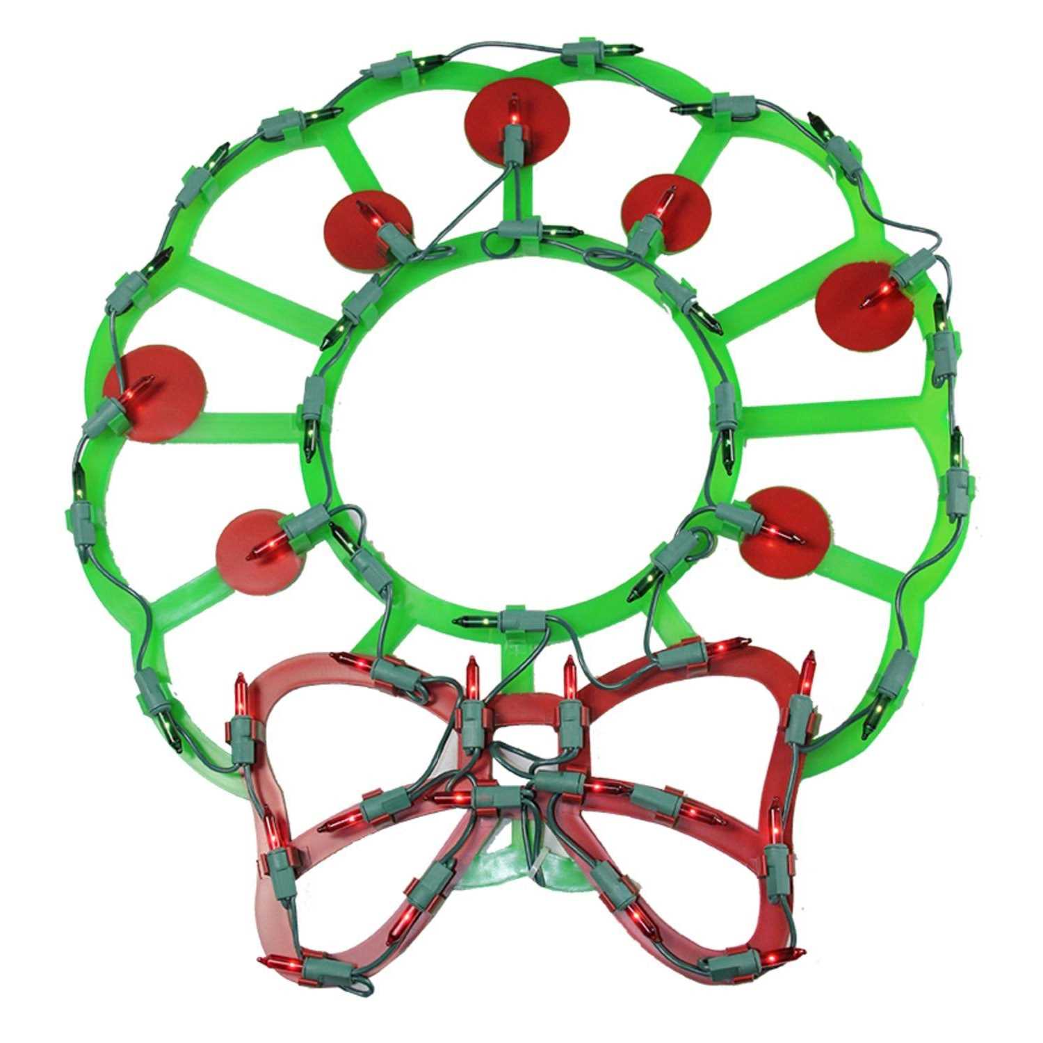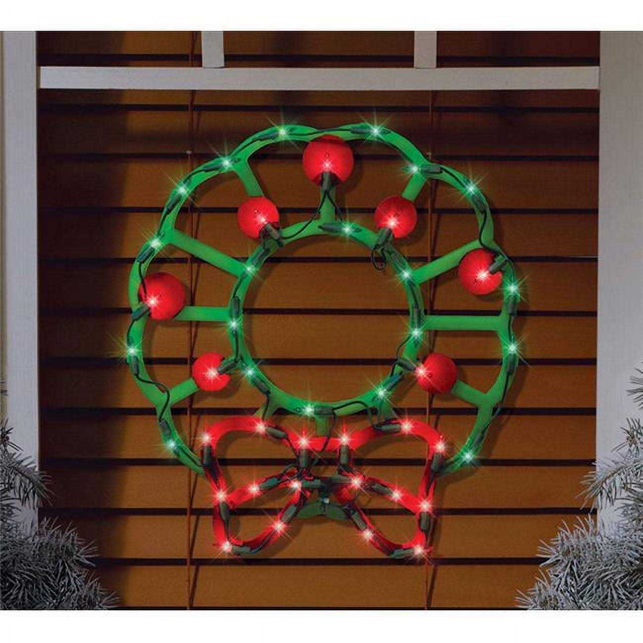 IG Design Green/Red Lit Wreath Silhouette Indoor Christmas Decor 95125