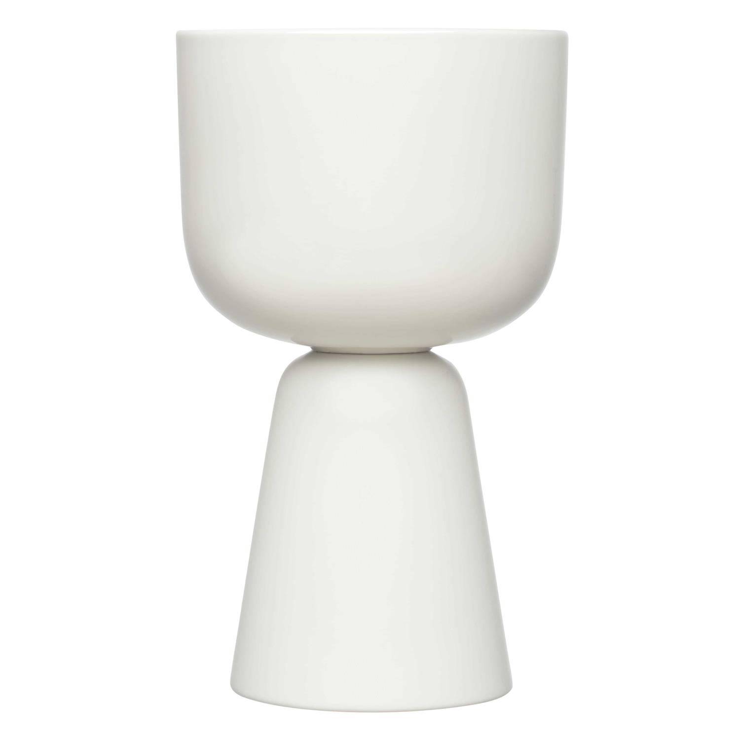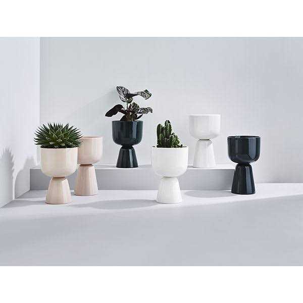 Houseplants are becoming a home decor essential for their lush beauty health benefits and ability to bring a room to life. Put your prized plants on a pedestal with the Nappula pot. Made from ceramic it’s the perfect home for cacti succulents ivy and more. Designer Matti Klenell was inspired by the legs of a peculiar table he came across at the Nuutajarvi glass museum to create the Nappula candle holders and these planters fit seamlessly into the clean-lined classic-meets-contemporary collection. The bowl-like upper portion holds the greenery while the hollow bottom acts as a stable stand that can be placed on the floor a table or stool. Wearing a crisp white hue this is the taller of two available heights.